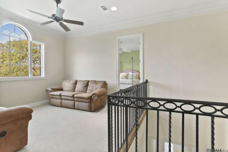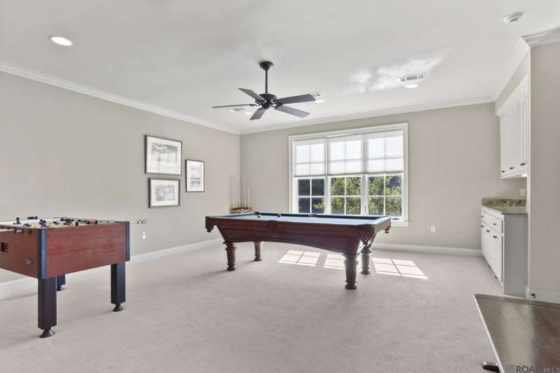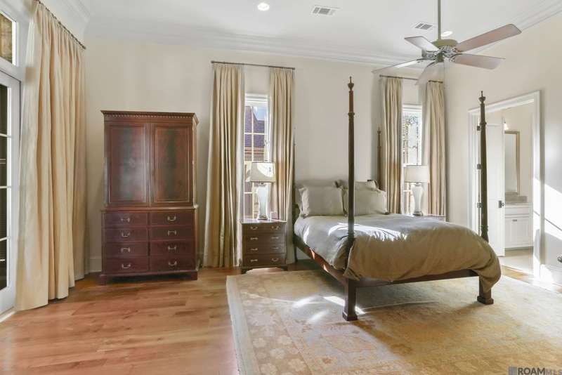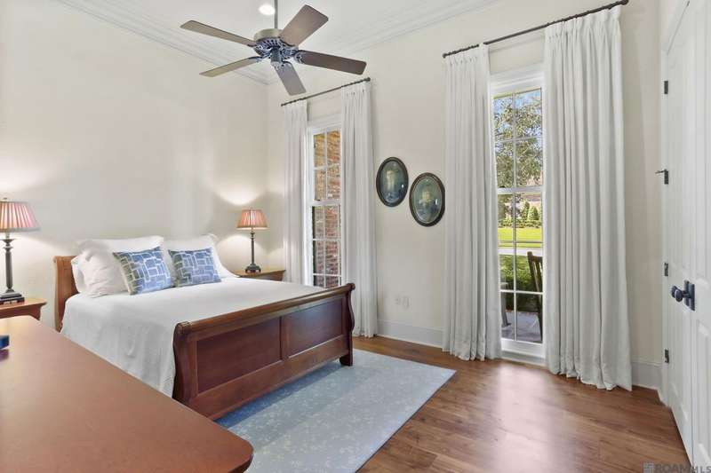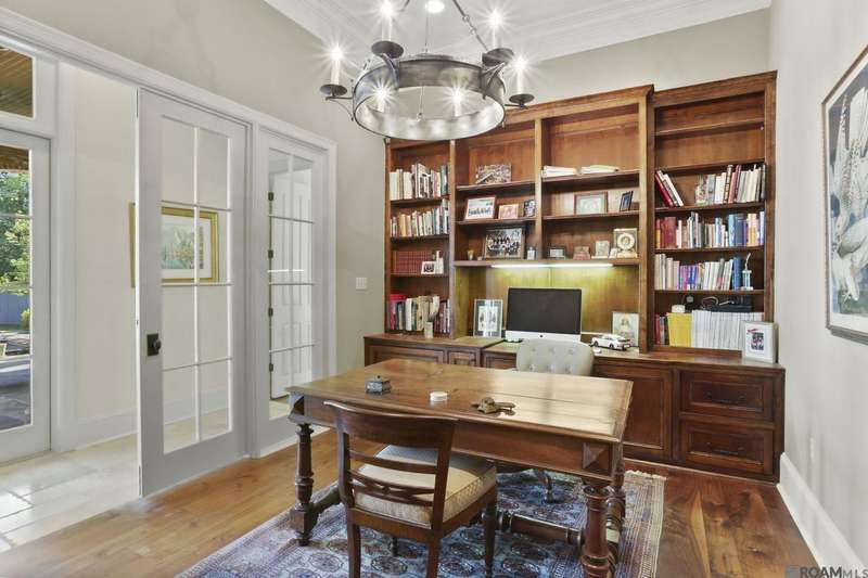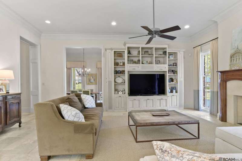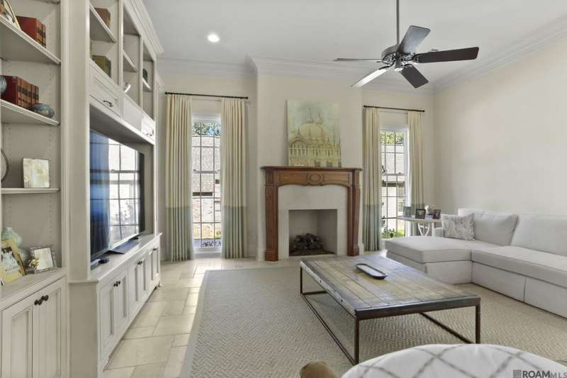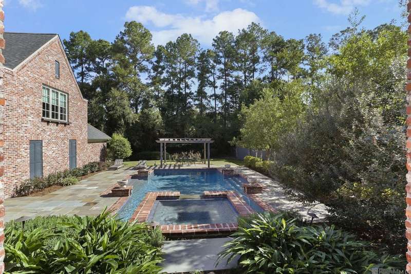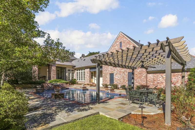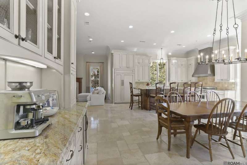 Welcome to this stunning custom home in one of the area's most desirable guard-gated communities! Designed with timeless style and built with quality craftsmanship, this 6-bedroom, 5.5-bath home offers over 5,300 sq. ft. of stunning living space. Step inside to soaring 12-foot ceilings, rich walnut wood, tumbled Jerusalem travertine floors, and elegant finishes throughout. The kitchen is a chef's dream with a Wolf 6-burner gas range under a stained copper hood, large island, double sink, and mini wine fridge. The spacious living/keeping area and dining area transition effortlessly and are ideal for both everyday living and entertaining. With lots of windows the indoors flows seamlessly to the outdoors, where you'll find a sparkling pool, outdoor kitchen, and fireplace?perfect for entertaining or relaxing. The primary suite is a true retreat with walnut floors, and a cozy porch with its own fireplace. A multi-functional private office, with custom built-ins, has a view of the pool. Other special features include (but not limited to) a game room, additional office, 3 car garage, Jeld-Wen insulated windows, and a brand-new roof. A rare opportunity to own a beautifully maintained home where elegance and livability come together perfectly