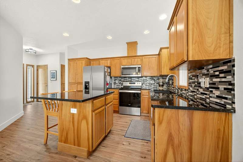 Located just blocks from South Medford High you will love this this single level 3-bedroom, 2-bath home featuring a wonderful floorplan for functional living. The kitchen features granite countertops, a center island, stainless steel appliances, and a cozy eating area. Enjoy the warmth and durability of easy-care luxury vinyl flooring throughout the main living areas. The home beams with natural light enhanced with skylights creating a bright and airy atmosphere. The spacious primary bedroom is a nice retreat with an full ensuite featuring a granite-topped vanity. Step outside and relax on the covered patio, perfect for year-round enjoyment, overlooking the fully fenced and landscaped yard—ideal for pets, gardening, or relaxing in privacy. This home also features an attached 2 garage plus a dedicated indoor utility room. This home is ready to welcome its new owners!