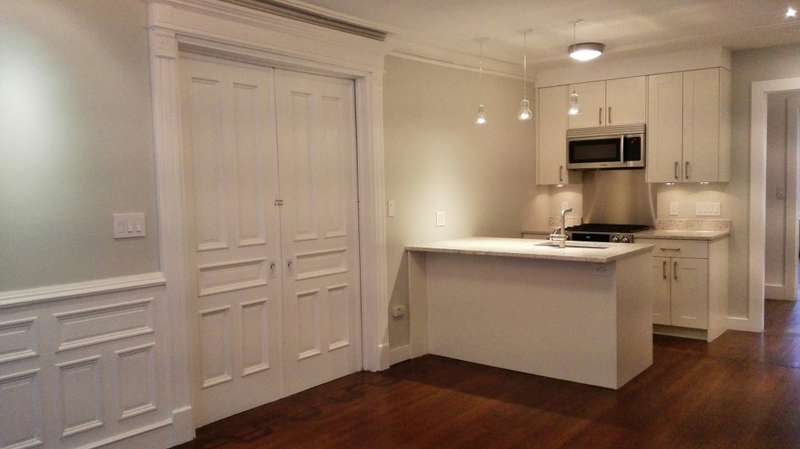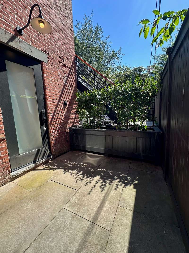 Stunning, mint-condition 1 bedroom plus office/den on garden level of beautiful North Slope brownstone. This apartment offers the best of both worlds- state-of -the-art amenities and historic woodwork. No detail has been overlooked. Enjoy the convenience of a high-end, thoughtful renovation and the charm of an original mantelpiece, inlaid hardwood floors and window shutters. Open Kitchen/Dining/Living Room is ideal for cooking and entertaining. The new, luxury kitchen includes stone countertops, Stainless Steel appliances (Jenn-Air Stove and microwave, Electrolux Refrigerator and Bosch DW). Savor your private outdoor retreat-a serene patio complete with planters for backyard gatherings and dining. Coveted extras include: Central AC, private Bosch washer/dryer and additional storage in the finished basement; ample closets, built-in storage, custom lighting and high speed Cat 6 internet jacks throughout. An additional office/den/nursery, plus huge, updated bath make this truly a dream home! Located on a gorgeous, Prime North Slope block, minutes from the 2/3/Q/B. SORRY, NO PETS.