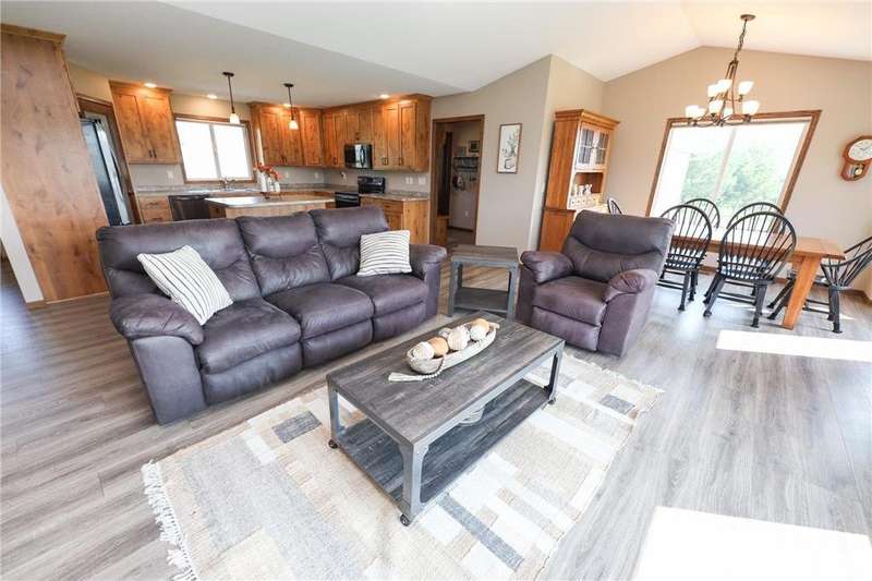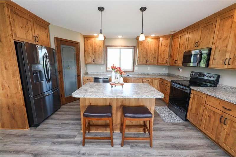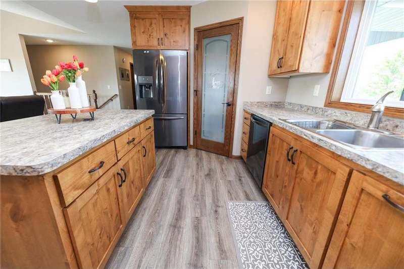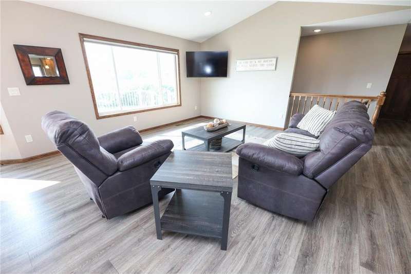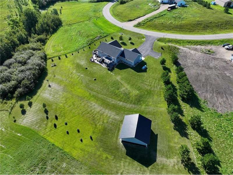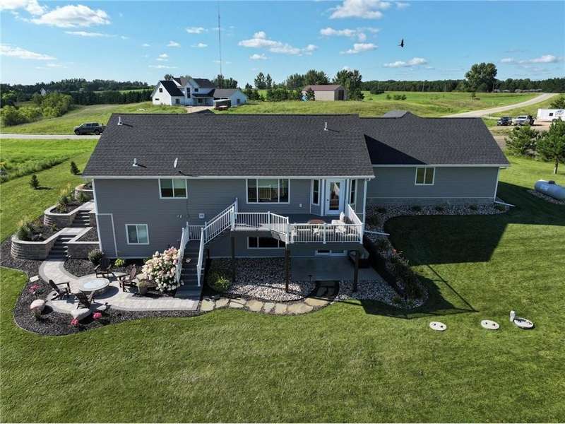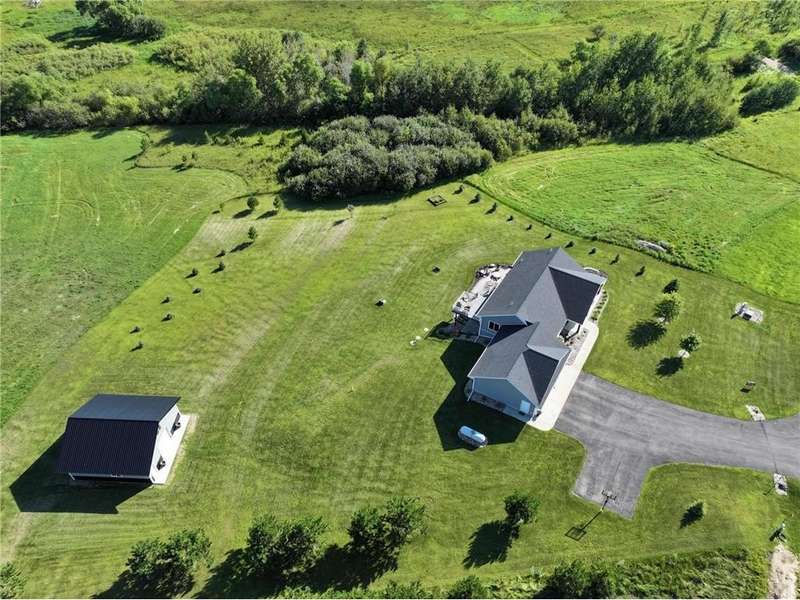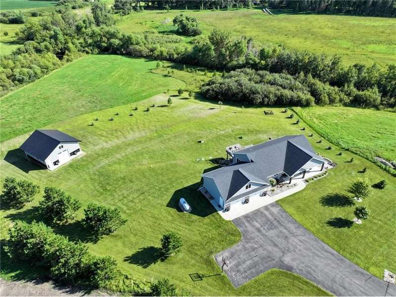 A perfect place to grow! This beautiful home offers a fantastic floor plan with plenty of room, stunning views and over 3 acres! With an open-concept and 4 bedrooms, this home flows effortlessly throughout the main level and also transitions great from the upper to lower level; cozy but not closed off! The kitchen is modern with great lighting; an amazing feature in the kitchen is the walk in pantry ready to store all of your food/cutlery items without the eye sore. Just off the living room is a great master suite with a walk-in tile shower and not one but two walk-in closets! Step down into the lower level where you’ll find more bedrooms but best of all, HUGE recreation area for games and a walk-out to the backyard patio. But the real showstopper is the incredible outdoor space. A vast and sprawling yard provides a haven for play, gardening, or simply unwinding. Just last year, a gorgeous landscaping project was completed that includes retaining walls, stone steps along the side of the house and an awesome paver gas fire patio! Imagine sunrise, peaceful mornings on your great deck, overlooking your private landscape with your morning coffee. A bonus shed with concrete and electric offers the perfect solution for all your storage and hobby needs. Big package here at a nice price! Lot next door, additional 1.79 acres also available for a total of 4.81 acres!