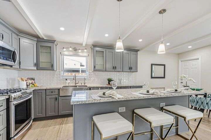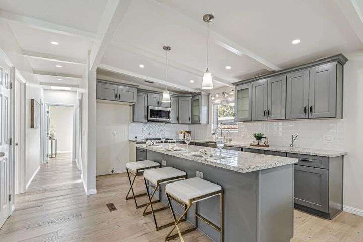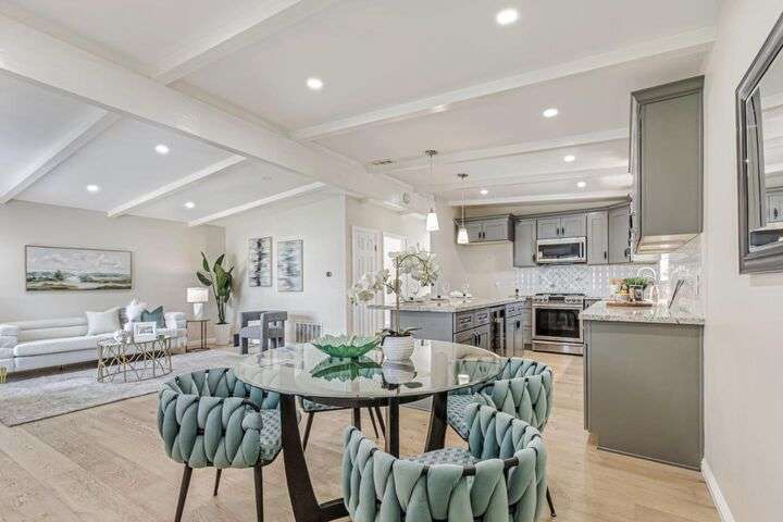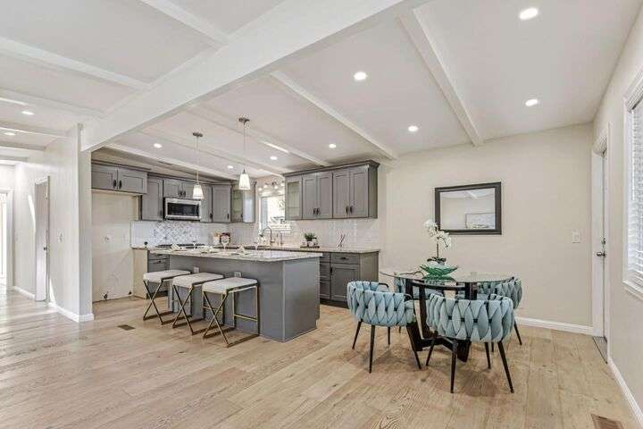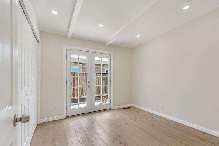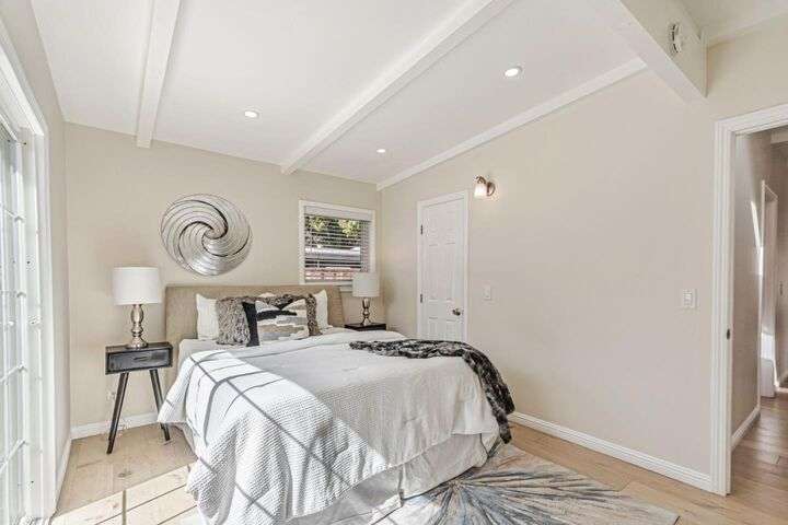 Located in the heart of Silicon Valley, this beautifully updated 3-bedroom, 2-bathroom home blends modern comfort with prime convenience. The remodeled kitchen features granite counters, an island wine cellar, gas oven/range, dishwasher, microwave, disposal, and double sink with exhaust fan. The primary bedroom opens to the backyard, while the third bedroom offers French doors to the side yard. Both bathrooms are fully renovated with heated floors. Enjoy central A/C with a Bryant gas heater and Nest controller, newer engineered hardwood floors, upgraded electrical, insulated ceilings, LED recessed lighting with dimmers, and custom closets with built-in LED lights. The finished, insulated 2-car garage with EV charger adds flexibility. Exterior highlights include a stamped concrete patio, pavers driveway, storage shed, double-pane windows, skylight, and a TPU roof with 20-year transferable warranty. Ideally situated near major freeways, top tech employers (Nvidia, Intel, Apple), Levis Stadium, Santa Clara University, and premier shopping and dining at Santana Row and Valley Fair.