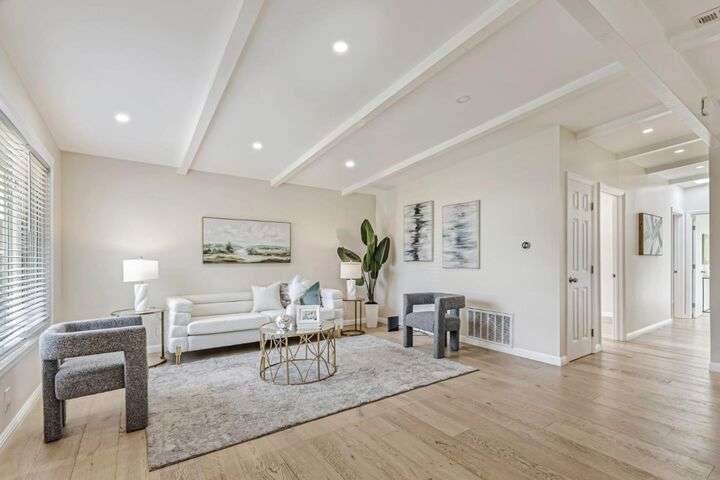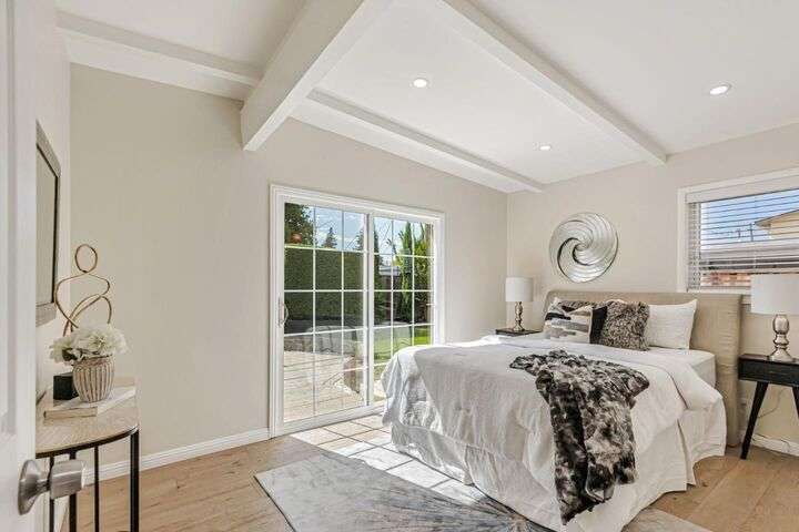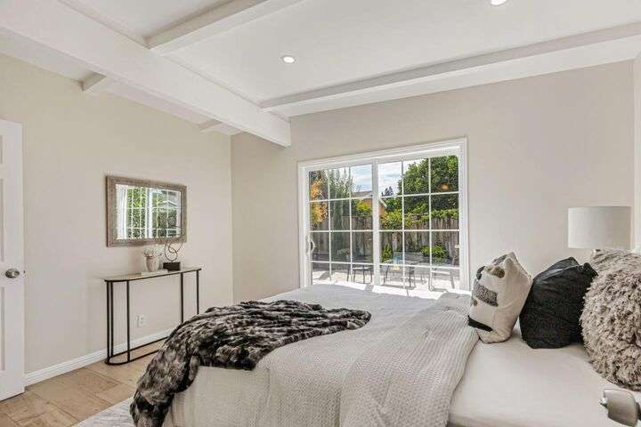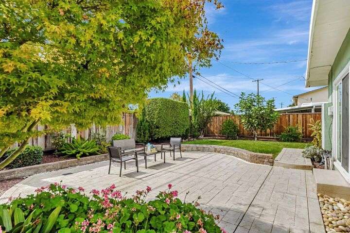Located in the heart of Silicon Valley, this beautifully updated 3-bedroom, 2-bathroom home blends modern comfort with prime convenience. The remodeled kitchen features granite counters, an island wine cellar, gas oven/range, dishwasher, microwave, disposal, and double sink with exhaust fan. The primary bedroom opens to the backyard, while the third bedroom offers French doors to the side yard. Both bathrooms are fully renovated with heated floors. Enjoy central A/C with a Bryant gas heater and Nest controller, newer engineered hardwood floors, upgraded electrical, insulated ceilings, LED recessed lighting with dimmers, and custom closets with built-in LED lights. There are security cameras inside and outside of the house for added peace of mind. The finished, insulated 2-car garage with EV charger adds flexibility. Exterior highlights include a stamped concrete patio, pavers driveway, storage shed, double-pane windows, skylight, and a TPU roof with a 20-year transferable warranty. Ideally situated near major freeways, top tech employers (Nvidia, Intel, Apple), Levis Stadium, Santa Clara University, and premier shopping and dining at Santana Row and Valley Fair.