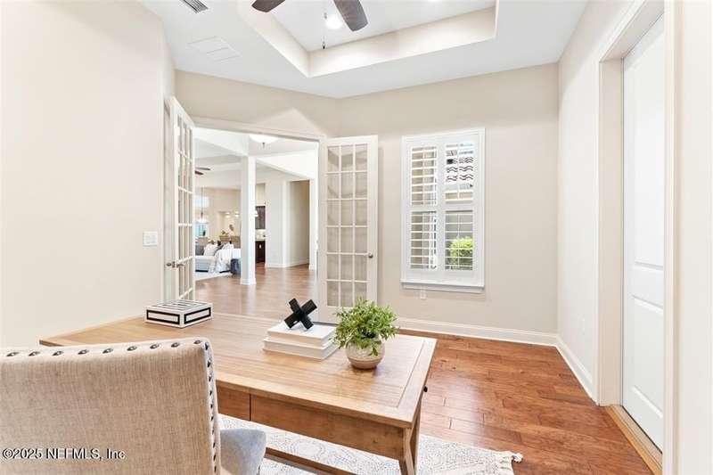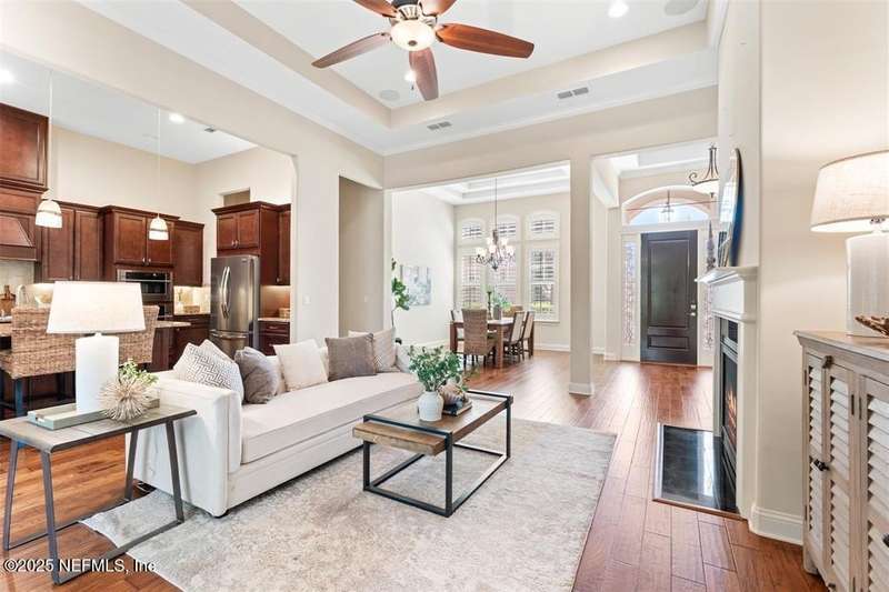 A SHORT STROLL FROM THE BEACH this beautifully maintained 4-bed/3-bath home nestled within gated community of The Preserve at Summer Beach. This one-level residence offers easy, low-maintenance coastal lifestyle with inviting open-concept layout & split-bedroom floorplan. Enjoy rich wood flooring throughout main living areas, study, & bedrooms. The thoughtfully designed gourmet kitchen boasts ss appliances, 42'' cabinets, & gas cooktop. Beaded corners, crown molding, ample storage, & high-quality finishes as well as plantation shutters elevate the interior. Other upgrades include a tankless water heater, water filtration system, & electric car charging outlet, all tailored for modern convenience. Additional 10'x20' garage perfect for golf cart or workshop. Step outside to private screened-in porch, perfect for morning coffee or relaxing evenings in tranquil, tree-lined setting. Designed for a true lock-and-leave lifestyle, home is ideal as full-time residence or seasonal retreat.