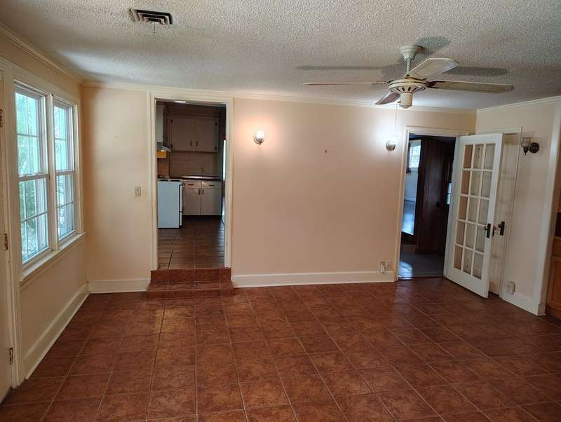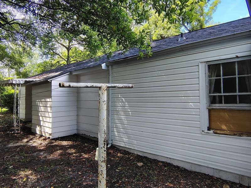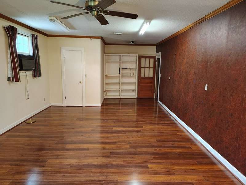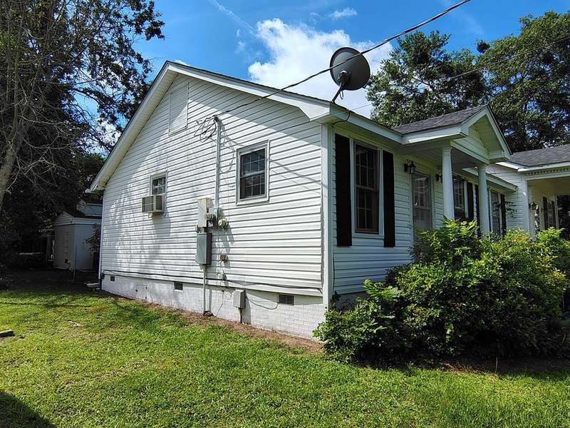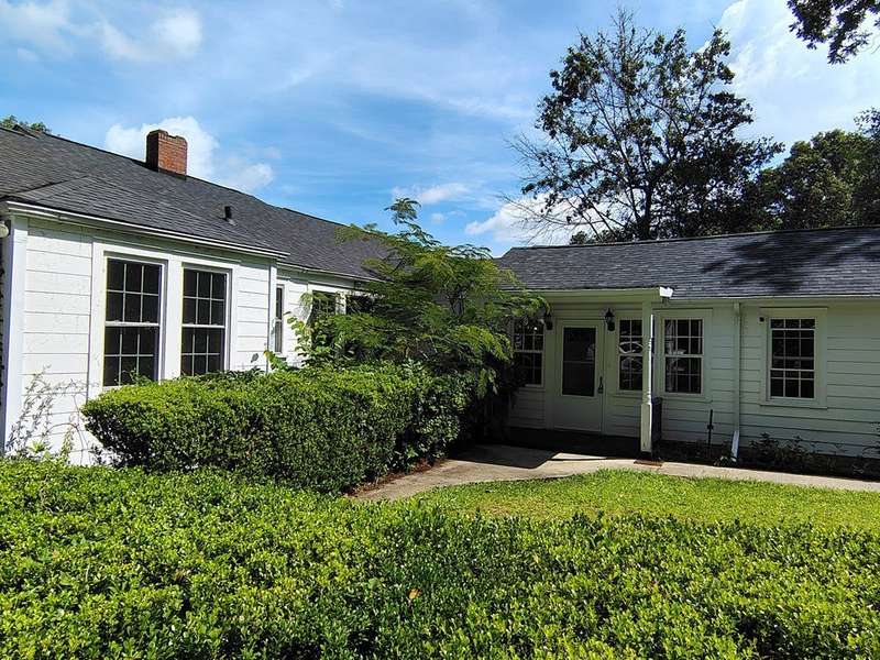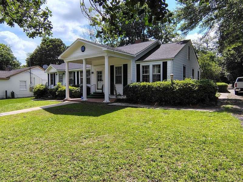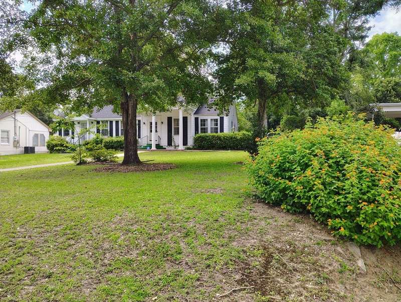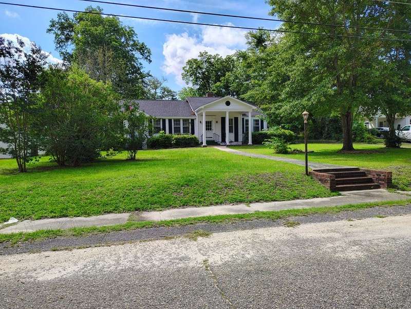 Spacious single level inside Manning city limits in quiet neighborhood ready for new ownership. Large front yard and nice private rear yard with gazebo. Driveway entrance from Thames St and exit to New St with single carport with large storage room on left and smaller storage room on right. Front main entrance to Great Room with beautiful Hardwood floor, to left large Livingroom with laminate floor with library closet, to Office/Game room with tile floor, to Kitchen with tile floor, to side entrance to Family Room and another office area with tile floors to owners bedroom with twin walk in closets and bathroom. Also Two Guest bedrooms with hardwood floors and guest bath with tile floor. Utility room with stackable washer/dryer and elect water heater.