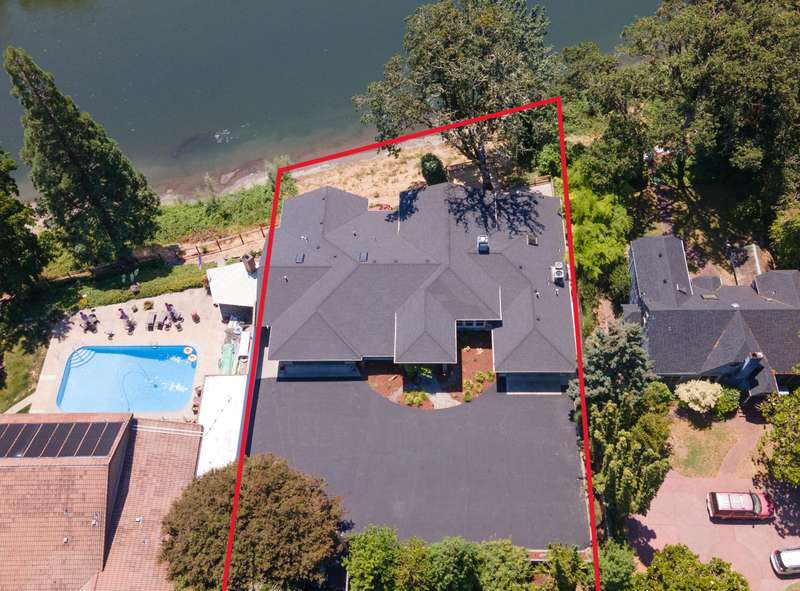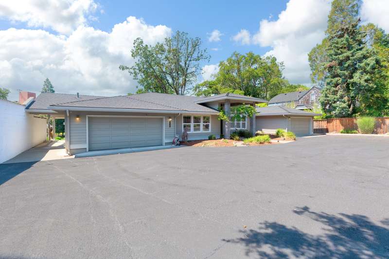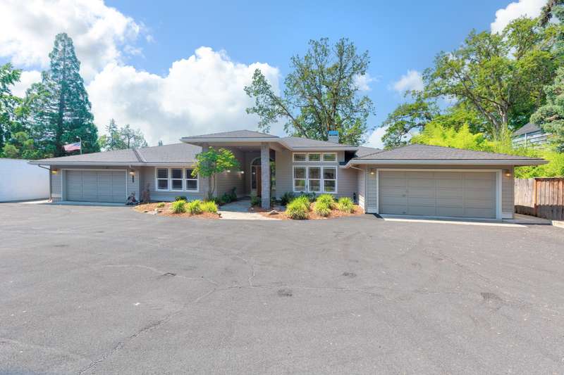 Nestled along the serene banks of the Rogue River, this exceptional property offers not one but 2 homes! The stunning main house boasts 3 spacious bedrooms, each with its own full bath. Spread across 3098 sf of living space, there are vaulted ceilings and massive windows to invite the beauty of nature inside. A dedicated study opens to a deck for relaxing or watching wildlife and the river flow by. The large open kitchen and dining combo allows for gatherings and entertaining on the large terraced decks overlooking the river. Two attached garages provide ample parking and storage. The Second home, at 1268 sf presents a versatile opportunity-perfect for use as a guest house, long or short-term rental, or multi-generational living arrangement. Featuring 4 bedrooms, 2 baths, and a detached garage, this home sits on a beautifully landscaped lot and back yard. With 2 bedrooms on the main level and 2 upstairs, it offers both charm and practicality. This property is a rare riverside retreat!