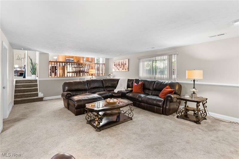 Don't let the exterior fool you-this spacious 4-bedroom, 2.5-bath split-level home in the desirable Hunting Meadows neighborhood offers much more room than meets the eye! Step into a bright, open foyer that leads to a spacious living room filled with natural light. The eat-in kitchen features a brand-new refrigerator (2024) and plenty of space to gather. From here, sliding glass doors open to a freshly painted deck (2024)-ideal for outdoor entertaining or relaxing afternoons. On the lower level, you'll find a huge family room with a wet bar, perfect for game nights or hosting guests. A fourth bedroom and half bath on this level make a great private office, home gym, or guest suite. The oversized laundry room includes extra cabinets for storage and convenience. Upstairs, retreat to a generous primary suite with two closets, double vanity sinks, and a private full bath. Two additional bedrooms and a beautifully updated full bathroom (2023) complete the upper level. Tucked into a quiet neighborhood with mature trees and easy access to parks, shopping, and I-71, this home is truly move-in ready and offers the perfect blend of comfort, space, and style. Schedule your showing today-you won't believe how much this home has to offer!
