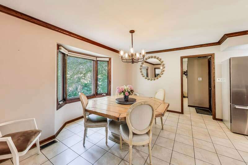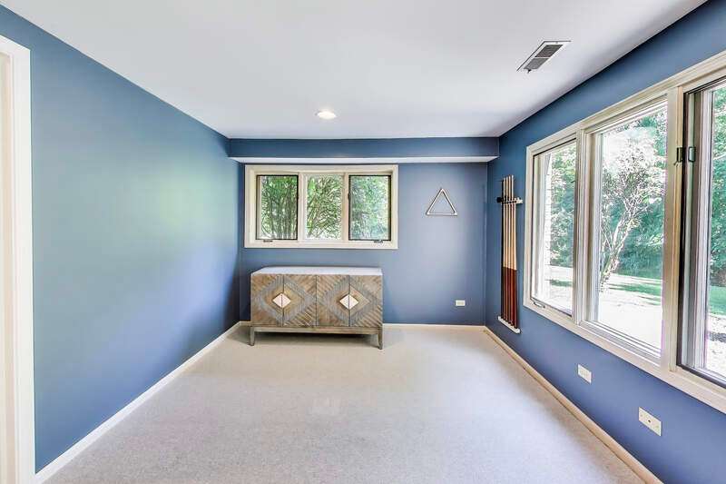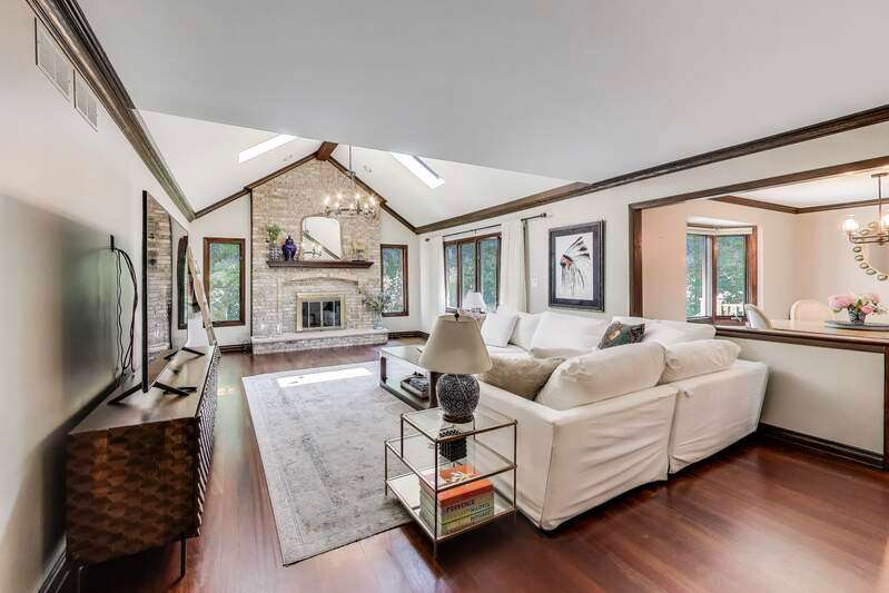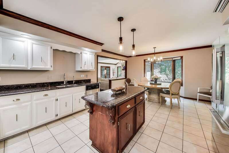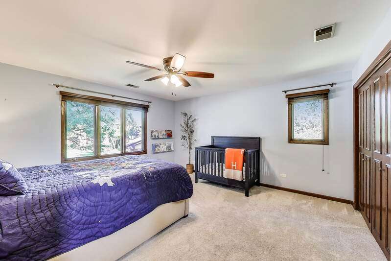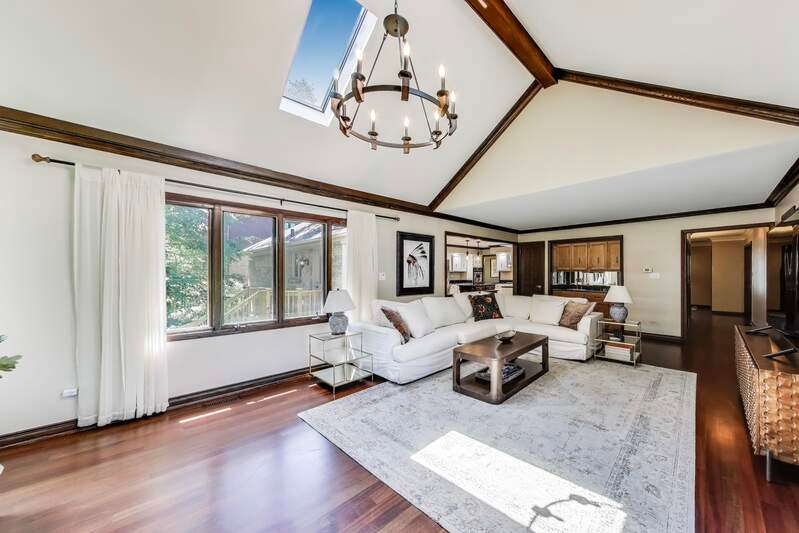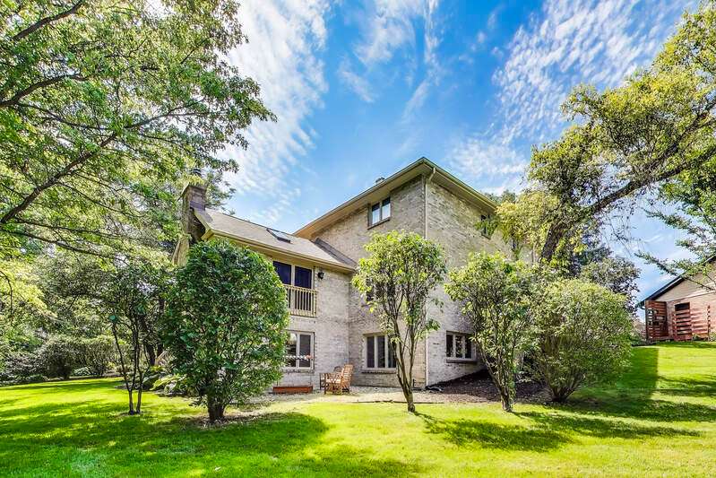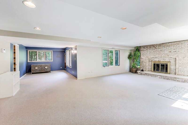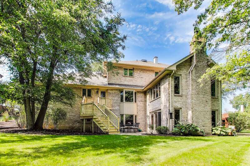 Tucked away on a peaceful cul-de-sac and set on a charming half-acre lot, this beautiful brick two-story home offers privacy, space, and convenience-just minutes from shopping and dining. Enjoy stunning rear views from the upper deck or lower patio, with lush landscaping and a serene setting that includes a quaint bridge over a creek leading to Creekside Park. Inside, you'll find four generously sized bedrooms with brand-new carpeting, fresh neutral paint throughout, and gorgeous new Brazilian hardwood floors. The spacious family room features a vaulted ceiling and a dramatic two-story stone fireplace. Work from home in the main-floor office just off the family room. The walk-out basement offers incredible versatility with a second kitchen, additional dining area, and another cozy stone fireplace-ideal for guests, gatherings, or multi-generational living. Other standout features include detailed millwork, new lighting, abundant storage, and a 3-car garage. Major updates like the roof, HVAC, and water heater have all been completed since 2012. Located in the highly sought-after Hinsdale Central High School District, this home blends classic charm with modern updates in an unbeatable location.
