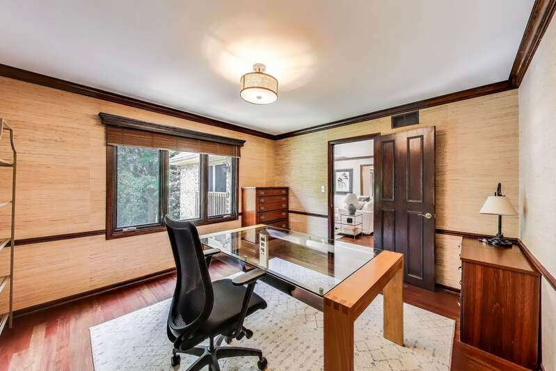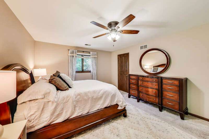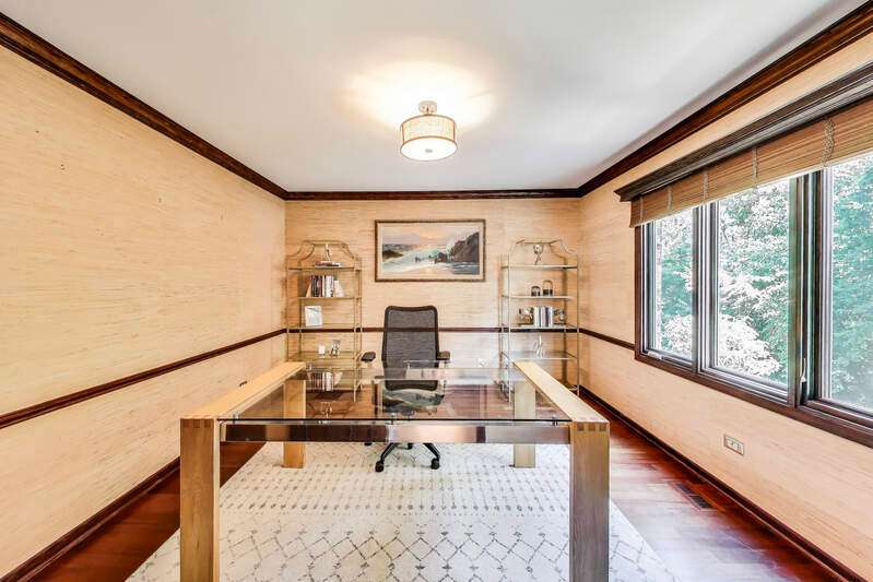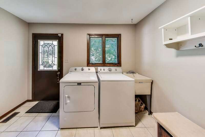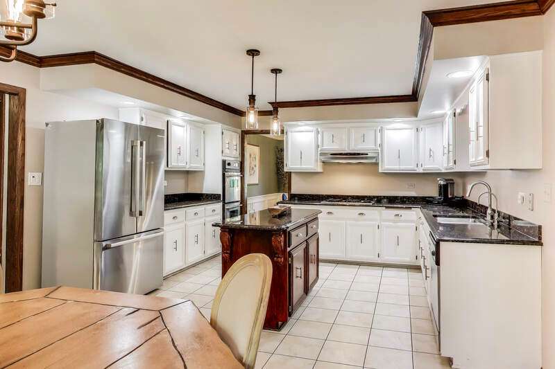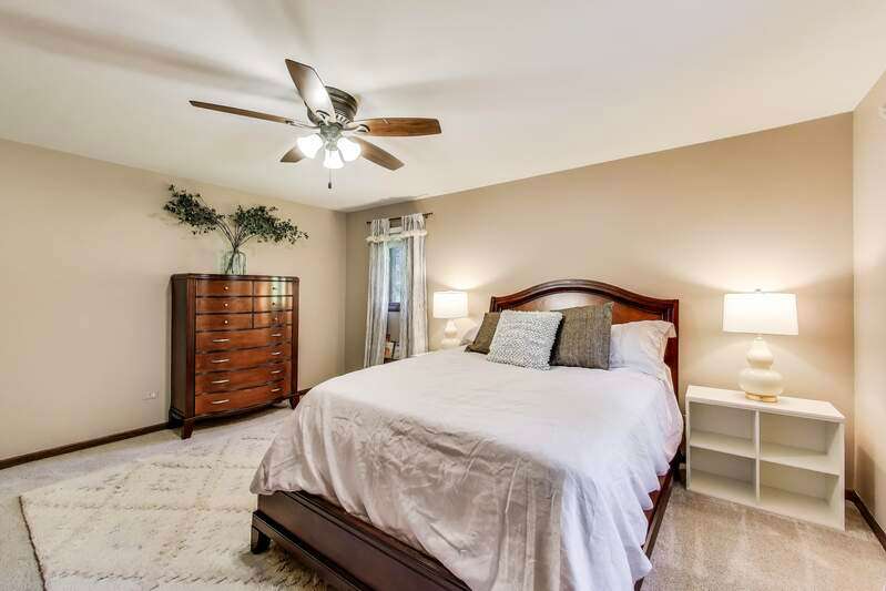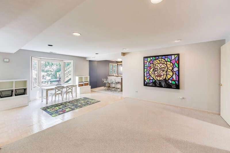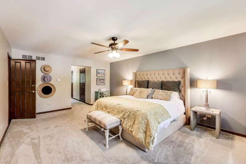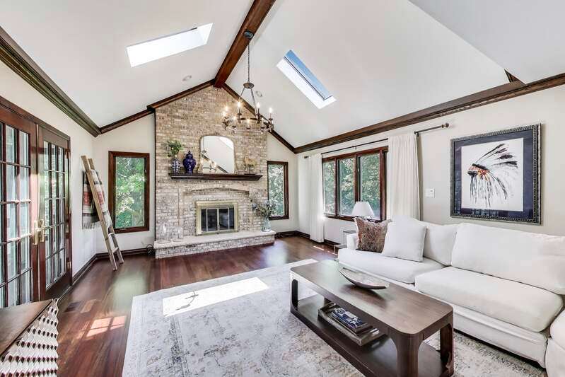 Tucked away on a peaceful cul-de-sac and set on a charming half-acre lot, this beautiful brick two-story home offers privacy, space, and convenience-just minutes from shopping and dining. Enjoy stunning rear views from the upper deck or lower patio, with lush landscaping and a serene setting that includes a quaint bridge over a creek leading to Creekside Park. Inside, you'll find four generously sized bedrooms with brand-new carpeting, fresh neutral paint throughout, and gorgeous new Brazilian hardwood floors. The spacious family room features a vaulted ceiling and a dramatic two-story stone fireplace. Work from home in the main-floor office just off the family room. The walk-out basement offers incredible versatility with a second kitchen, additional dining area, and another cozy stone fireplace-ideal for guests, gatherings, or multi-generational living. Other standout features include detailed millwork, new lighting, abundant storage, and a 3-car garage. Major updates like the roof, HVAC, and water heater have all been completed since 2012. Located in the highly sought-after Hinsdale Central High School District, this home blends classic charm with modern updates in an unbeatable location.