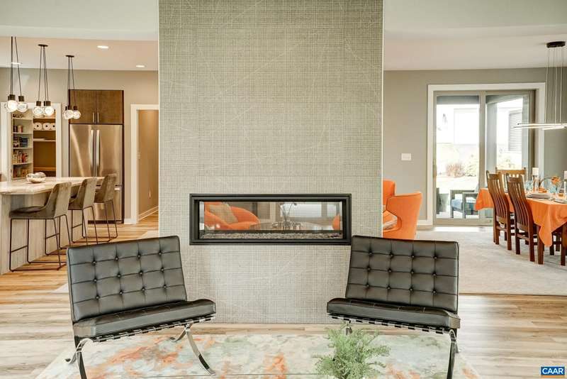 This custom-built home is a stunner where every detail speaks to luxury and functionality. An expansive open floor plan is an entertainers dream. The living room features a dual-sided, electric fireplace and 11-foot ceilings, perfect for both intimate moments and grand entertaining. The gourmet kitchen features upgraded appliances including Wolf induction range w/ convection oven, Cove dishwasher, and beverage/wine fridge, and modern design with a large, sleek island and pantry, and tile backsplash with hidden outlets, and opens into a large sitting room and formal dining area. Upstairs, the primary suite features remote-controlled blinds, custom walk-in closet and ensuite bathroom with floating vanity, and frameless glass shower. Two generous bedrooms each feature built-in closets and ceiling fans and offer comfortable living spaces. A versatile loft provides the perfect spot for movie nights or a home office. A covered lanai is a great spot to enjoy the back yard, and two levels of wrap around decks provide amazing outdoor entertaining options.