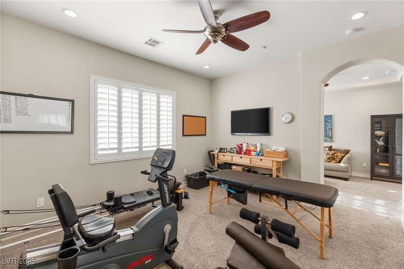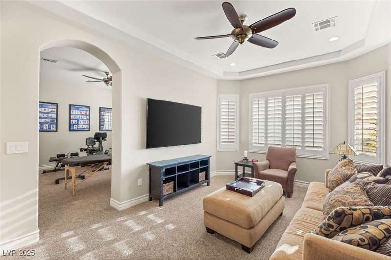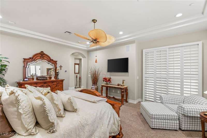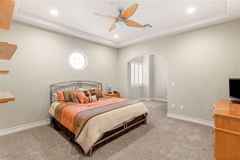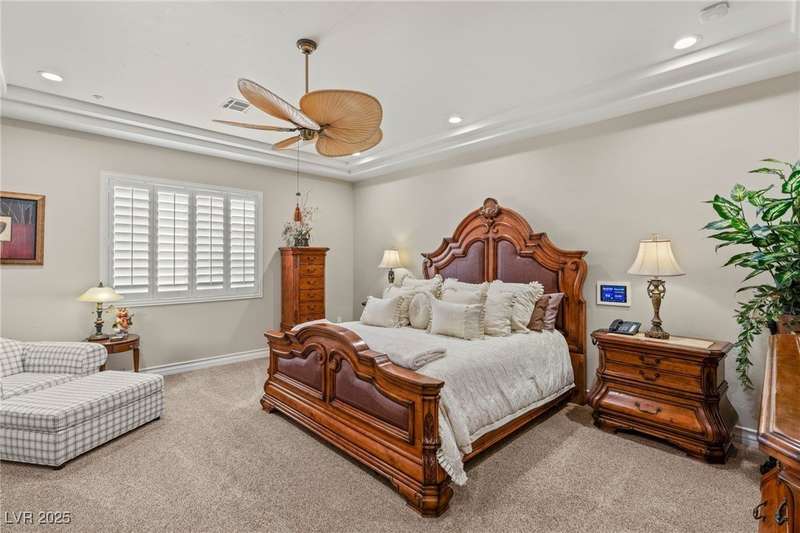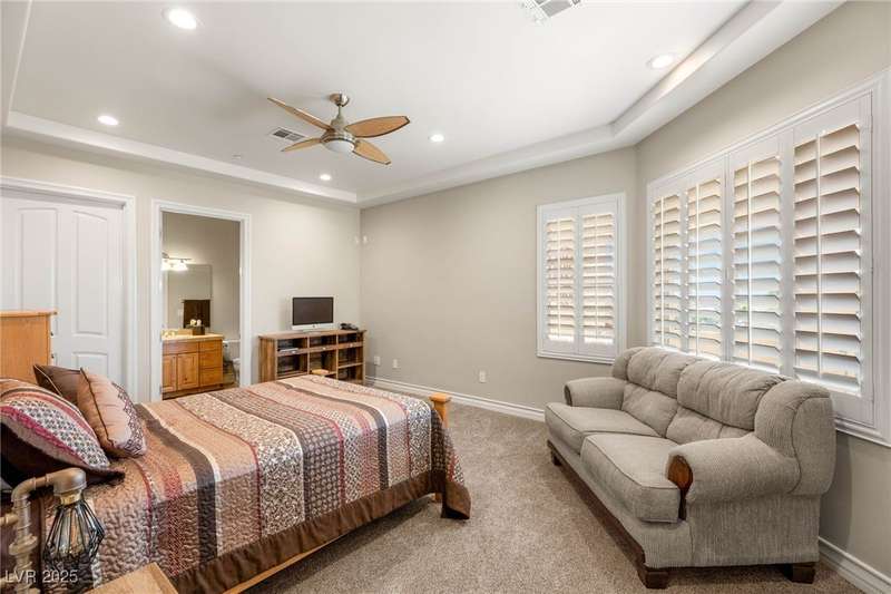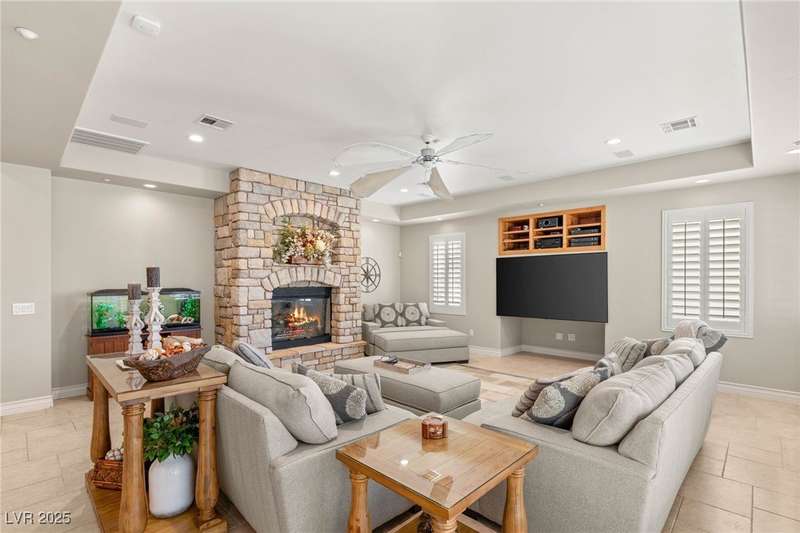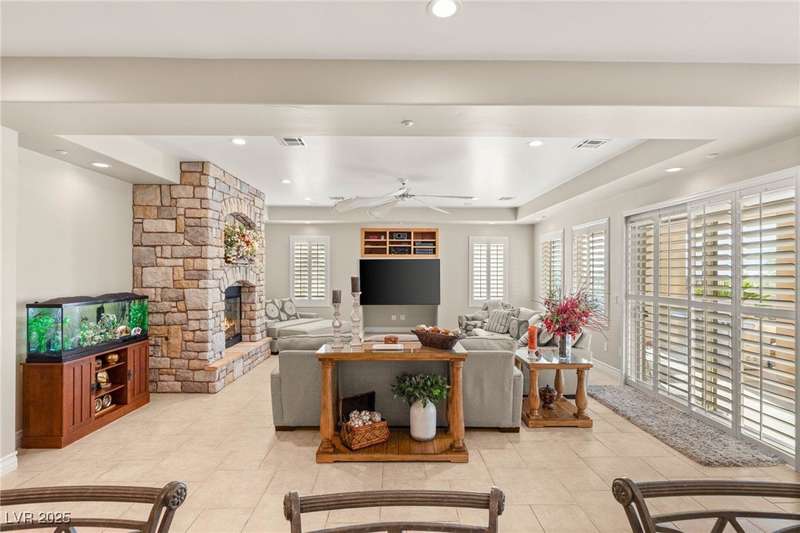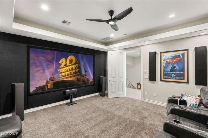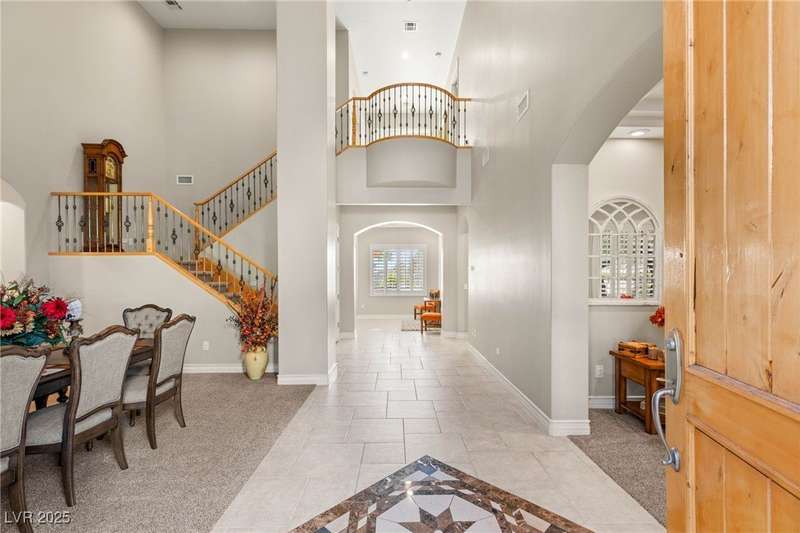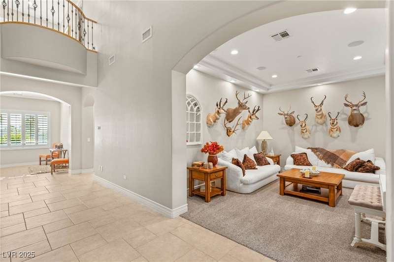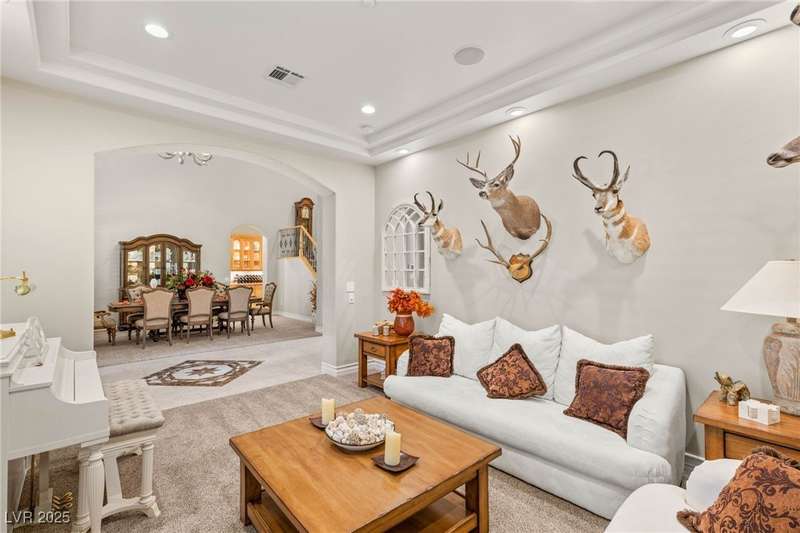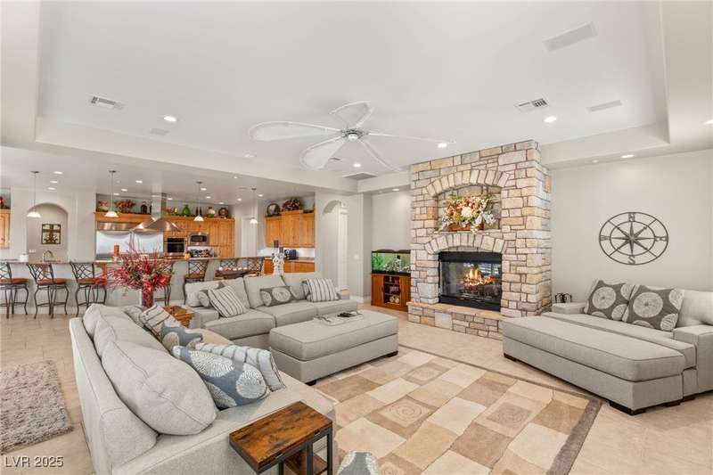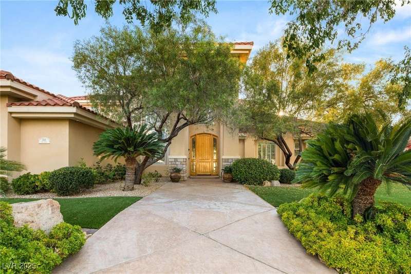 RARE opportunity to own a 5 car garage / RV Parking on a HALF ACRE lot in Seven Hills Estates. Experience luxury living at 1383 Opal Valley in the beautiful, guard-gated Estates at Seven Hills. This expansive 6,035 sq ft estate rests on a beautifully landscaped half-acre with breathtaking mountain views. Designed for both comfort and sophistication, the home offers 4 spacious en suite bedrooms & 5 bathrooms. The first-floor primary suite offers privacy and convenience, while separate living spaces provide versatility for entertaining or relaxing. The chef’s kitchen is a culinary dream, perfect for gatherings. Enjoy movie nights in the dedicated media room or unwind on the balcony with sweeping mountain views. Car enthusiasts will appreciate the 5-car garage, Tesla hooks-ups, including an approximately 32-foot bay—ideal for an RV or boat. A must see!!