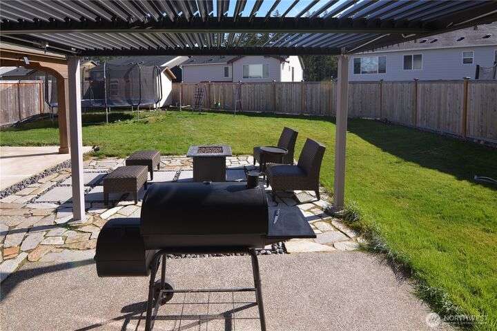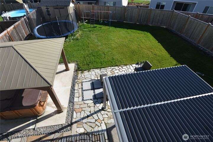 This stunning home has it all: paid-off solar panels, smart water, generator & hot tub wiring (with concrete pad and gazebo in place), &an electric car charging station! The extra-wide driveway & fully fenced, beautifully landscaped backyard w/ an outbuilding makes this property both functional & inviting. No need to install lights for every season! Inside, you’ll find electronic blinds, & thoughtful details throughout designed for comfort & convenience. Even the garage is optimized for extra storage! Enjoy the covered patio year-round; cozy in winter, & w/ adjustable slats to let in the sunshine come summer. Every upgrade has been done for you, now it’s ready for your personal touch. Wouldn't it be nice to be home for the Holidays?
