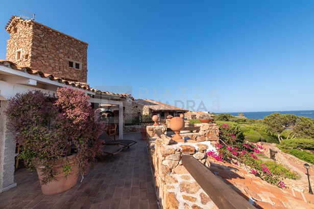 conic property in Porto Rotondo and Punta Volpe, the “torretta” is a house of great charm with one of the most beautiful sea views in the area.The property is free-standing on four sides and boasts an independent entrance leading to an important terrace, partially covered, with a magnificent view of the Gulf of Marinella and the open sea.Internally, the house is spread over four levels, with the uppermost levels inside the tower: on the first level, the same as the entrance, there is a living-dining area, kitchen, guest bathroom, and a double bedroom with an ensuite bathroom; on the second level, there is a double bedroom with an ensuite bathroom and access to a large terrace with a view; on the third level, there is a third double bedroom with an ensuite bathroom; the top level features a rooftop terrace.The house enjoys a position of absolute prestige and is set within one of the most exclusive contexts of Porto Rotondo.The village of Punta Volpe is highly charming, with numerous green spaces, well-maintained gardens, and various amenities, such as direct access to the sea with exclusive platforms, tennis courts, a children’s playground, and a swimming pool.The house is sold with two car parks and two cellars.