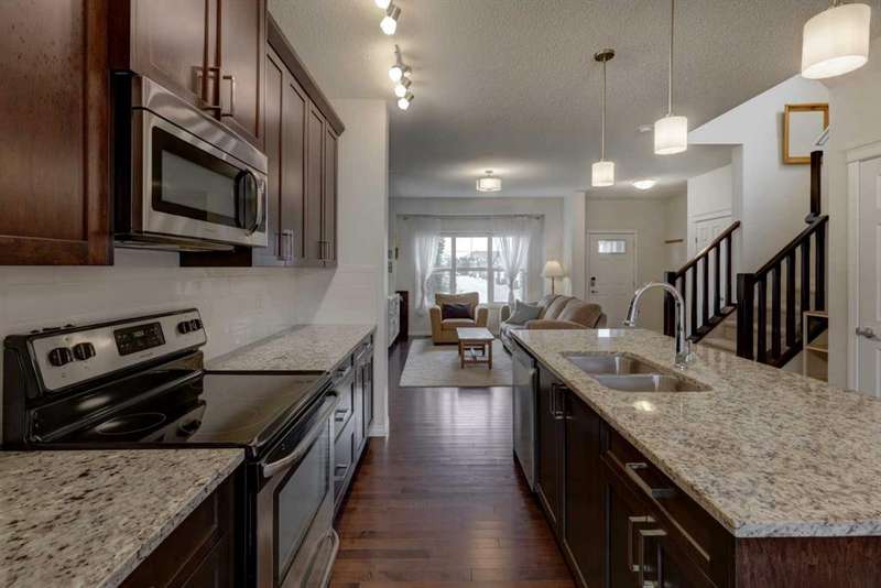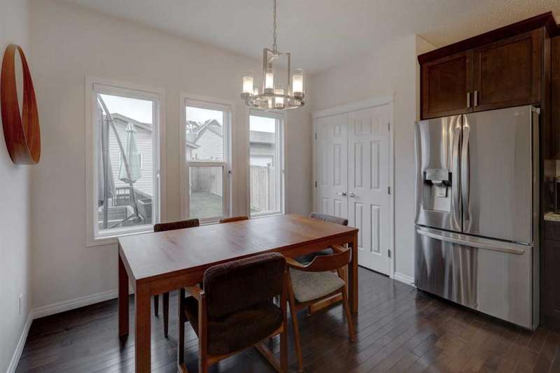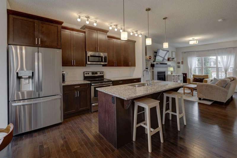 Welcome to 149 Hillcrest Avenue! This stunning 2-storey detached home offers over 2,000 sq ft of beautifully developed living space—designed for both family living and entertaining. The bright, open-concept main floor is flooded with natural light from large windows and features a spacious family room, a cozy dining area, a stylish half bath, and direct access to the oversized double detached garage. The chef’s kitchen is a true showstopper with upgraded cabinetry, abundant storage, under-cabinet lighting, high-end stainless steel appliances, granite countertops, extra pot lighting, and a generous island—perfect for cooking and gathering. Upstairs, you’ll find a luxurious primary retreat with a walk-in closet and 4-piece ensuite, along with two additional bedrooms, a second full bath, and a convenient laundry room. The finished basement offers a large family/recreation space with a sunshine window (ideal for an additional bedroom), a workout area, plenty of storage, and a rough-in for a future bathroom. Notable upgrades include 8’ interior doors on the main level, hardwood floors, elegant railings, and professional landscaping in both the front and sunny south-facing backyard. The oversized garage is finished with durable epoxy floors. All of this within walking distance to Northcott Prairie School (K–8), parks, playgrounds, and Coopers Plaza Promenade for dining, shopping, and everyday essentials.