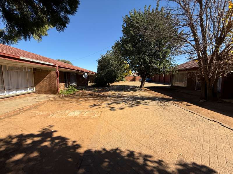 Small complex of only seven units, unit has enclosed courtyard at the back and small garden space at the front. Each unit has a lockable garage. Leading of from the front patio (perfect place to enjoy the evening) one enters into the separate living space, with kitchen at the back of it. Both Bedrooms have built in cupboards and a single bathroom with bath. Courtyard has a small braai in the far corner and in the other a pedestrian gate, allowing direct access for guests from the street. Complex is maintained and controlled by the owners, saving on monthly expenses. Unit is in walking distance from casino, Uraniaville industrial area and public transport.