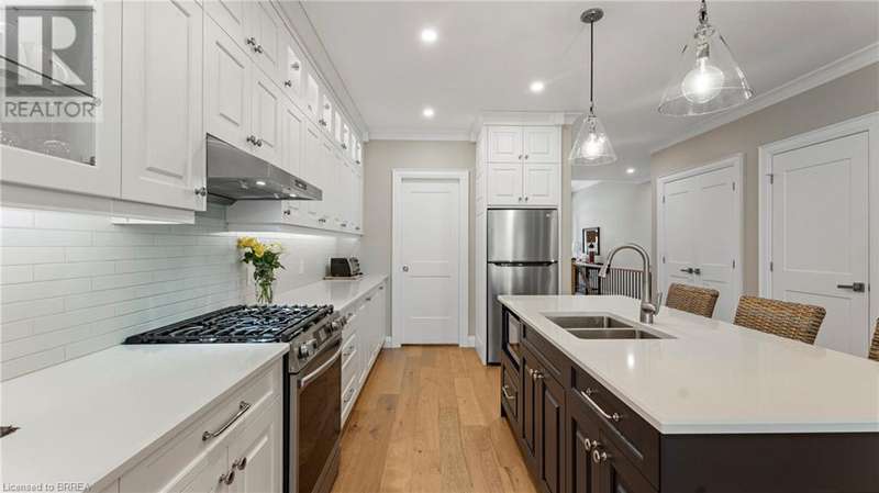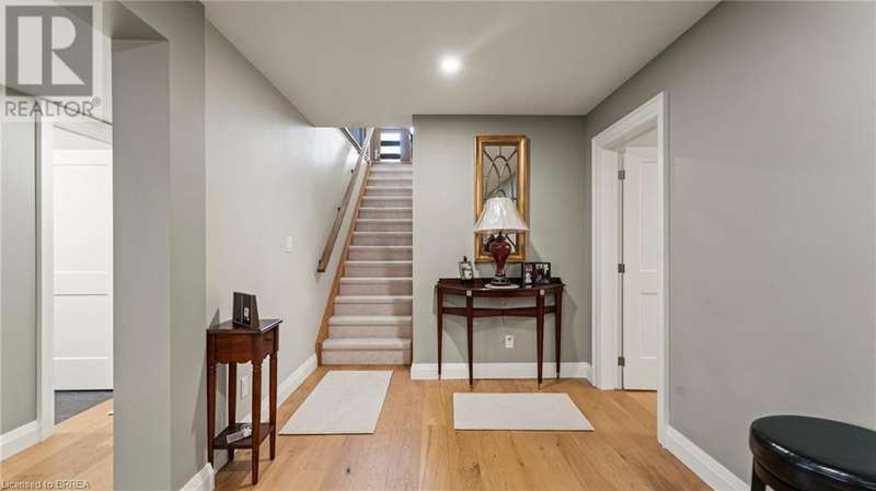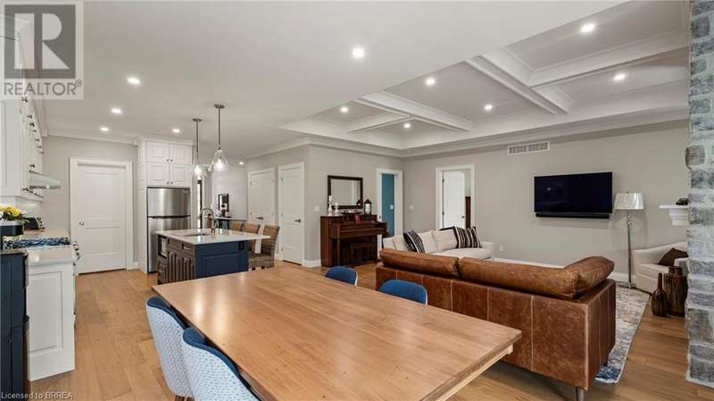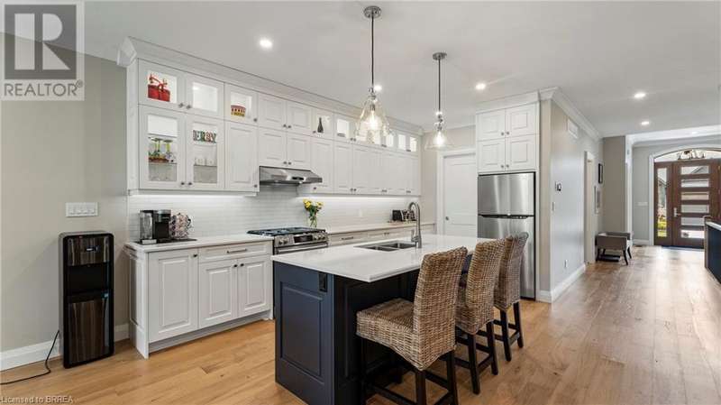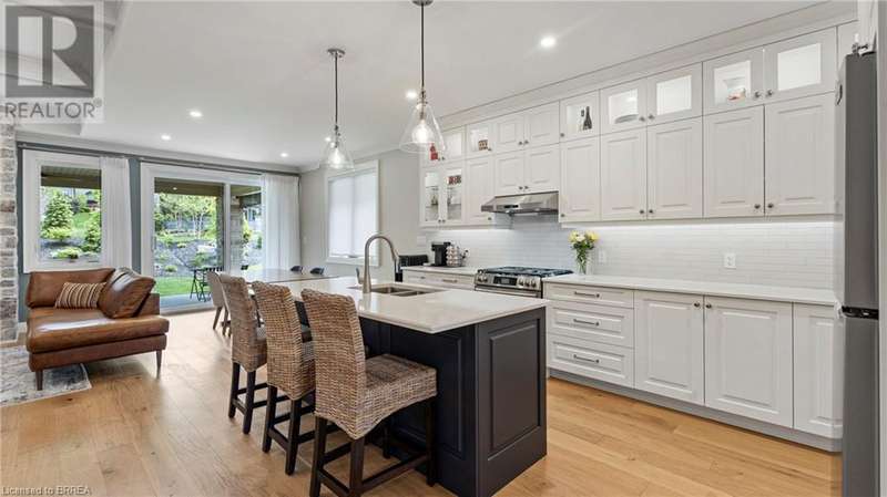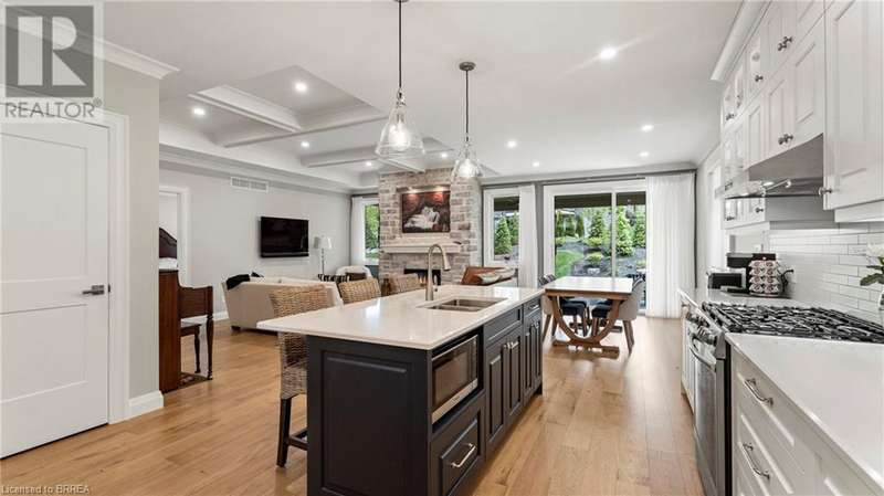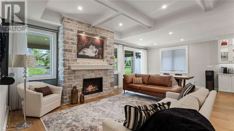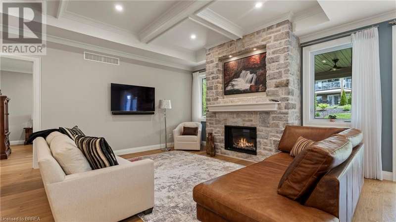 Welcome to 52 Beechnut Lane situated in the exclusive community of The Flats at Black Creek. This stunning bungalow offers an exceptional blend of luxury, comfort, & natural beauty. Surrounded by 14 acres of private parkland, residents enjoy access to scenic hiking trails & over 2,000 feet of private waterfront — complete with boat slips, kayak launch, & a fishing platform reserved exclusively for homeowners. Offering 2,971 sqft of total living space, this home has 2+2 bedrooms, 3 full bathrooms, and double attached garage. As you approach the home, you’ll be welcomed by a landscaped yard & charming covered front porch. Inside you'll find modern, high-end finishes, from the hardwood flooring to the crown moulding flowing throughout the main floor. The spacious front bedroom can easily serve as a home office, and has direct access to the main 3-piece bath. Continue to the heart of the home, where the living, dining, & kitchen areas are bathed in natural light and flow together. The kitchen is a chef’s dream, w/ample cabinetry, quartz countertops, centre island, and walk-in pantry. The dining area overlooks the beautiful backyard, offering the perfect backdrop for everyday meals or special gatherings. Anchoring the living room is a striking gas fireplace, framed by a coffered ceiling. Just steps away, the primary bedroom features a luxurious 5-piece ensuite & a generously sized walk-in closet for all your storage needs. Head down to the fully finished lower level, where you'll find 2 additional spacious bedrooms, a full bathroom, and a large rec room complete with a gas fireplace. Step into the backyard oasis, where a spacious covered porch awaits—complete with a cozy gas fireplace. Whether you're exploring the surrounding trails, launching your kayak at the private dock, or simply relaxing in the comfort of your beautifully crafted home, this home offers a rare lifestyle opportunity in a truly special setting. (id:7434)