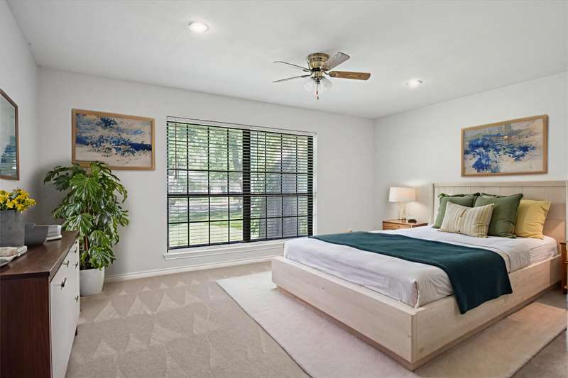Move-in ready with style to spare, this charming home is nestled on an oversized lot in a serene cul-de-sac, surrounded by mature trees and lush landscaping. Recent updates include fresh paint, carpet and tile, a beautifully remodeled primary shower, updated secondary tub and a newly built and stained deck. The open floor plan features a wood-beamed family room with wood flooring, a large fireplace, and an abundance of natural light. A versatile formal dining or extended sitting area or play space, private office with a built-in bookcase, and a cozy breakfast nook with vintage built-ins flow seamlessly into a retro-inspired kitchen overlooking the backyard. Step outside to enjoy a spacious yard complete with a charming chicken coop for fresh eggs, a fire pit area perfect for marshmallow gatherings with family and friends, and a stained privacy fence. A significant advantage, offering over 300 additional square feet, is the split remodeled bonus suite with a beautifully updated bathaccessible from both the garage and backyardit offers endless possibilities as a second primary, guest suite, or mother-in-law space. Extra touches like front garden beds planted with fresh herbs for cooking enthusiasts and a long driveway with plenty of parking make this home as practical as it is beautiful. With Southwest Park and Stipes Elementary just minutes away, this unique property offers the perfect blend of comfort, character, charm and everyday convenience. Come and fall in love with your future home!