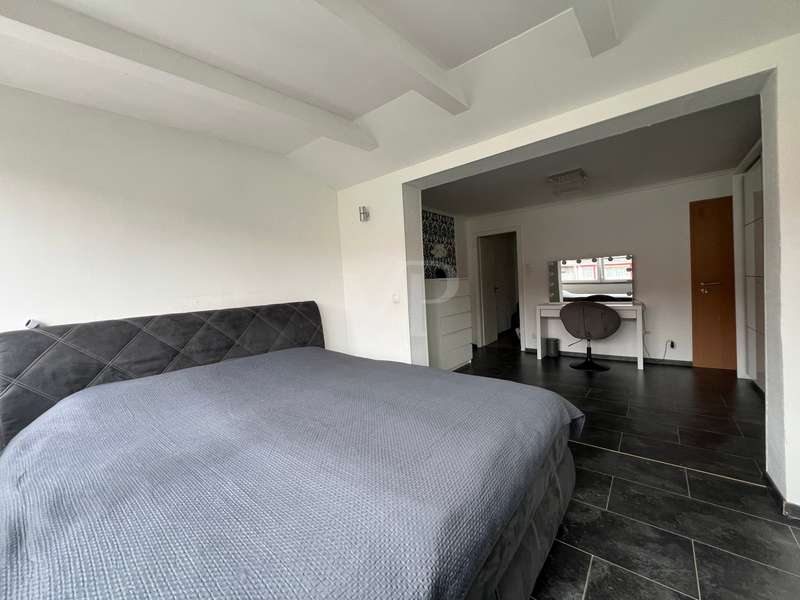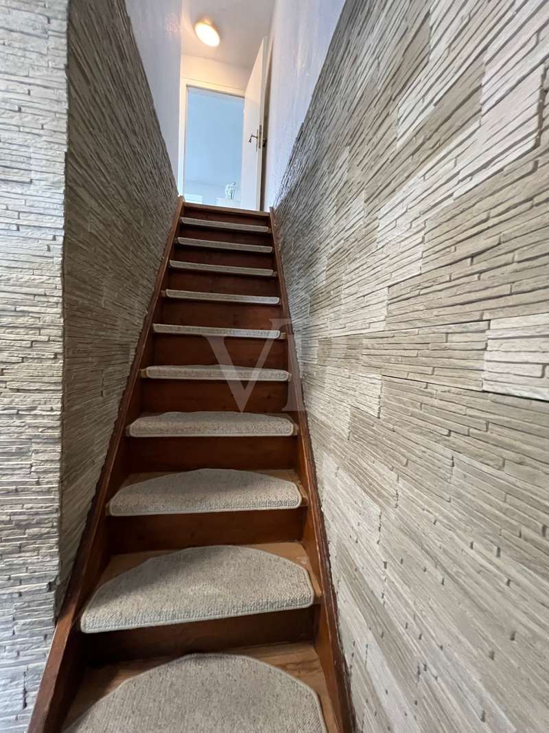 For sale is a modernized mid-terrace house from 1954 on a plot of approx. 242 m². The approx. 85 m² living space extends over five rooms and thus offers comfortable living space. The property was last extensively modernized between 2015 and 2022. Particular emphasis was placed on updating the technical and visual standards. The first floor features an open-plan kitchen, living and dining area, which was extended by an annex built in 1973. The extension has a flat roof and offers direct access to the terrace, which was redesigned in 2022 and is equipped with a privacy screen and high-quality granite flooring. The gas condensing heating system, which was renewed in 2018 including the water storage tank, ensures an energy-efficient heat supply and contributes to a pleasant indoor climate. The property has three bedrooms, which can be used flexibly, as well as a modern, small bathroom. The electrics throughout the house were newly installed in 2015, ensuring a modern and safe power supply. All windows and the front door were replaced in the same year. Together with the new roof covering, this contributes to the improved energy balance of the house. The exterior design was rounded off in 2020 with a renewed façade, so that the house is up to date both inside and out. The kitchen, which was modernized in 2016, offers enough space for a dining area and is functionally equipped. The interior doors on the first floor were replaced this year. The property is heated by central heating and has achieved a functional, simple quality of furnishings thanks to the modernizations. Particularly noteworthy is the central location within the city, which offers good public transport connections and an infrastructure within walking distance. This property is ideal for small families or couples looking for a modern home with solid basic furnishings. Thanks to the modernizations, the house offers a high level of living comfort. Interested buyers are cordially invited to view this property and see the benefits for themselves. We look forward to receiving your inquiry.