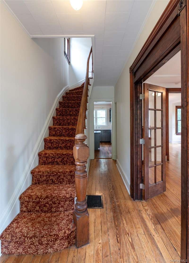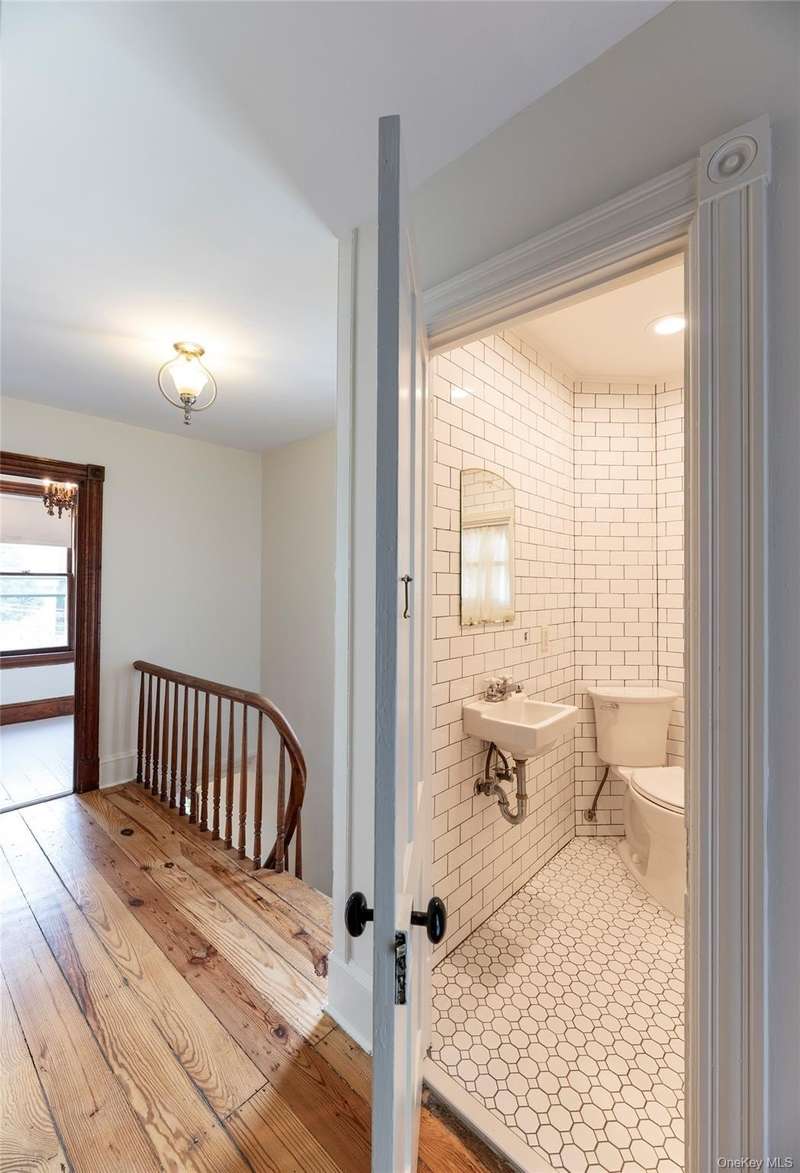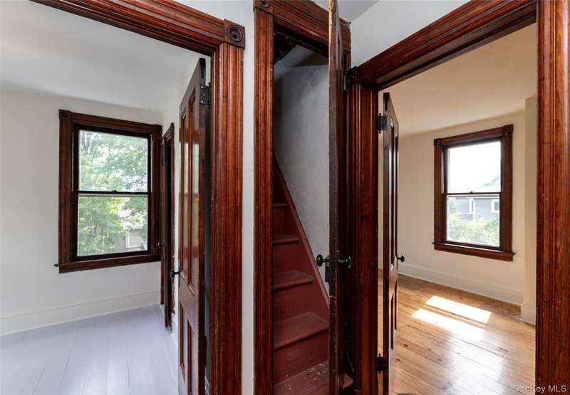 Just minutes from the Mario M Coumo Bridge, this circa 1890 Victorian offers tall ceilings, tin ceilings and timeless character that set a gracious tone. A private front porch welcomes you home, while a back deck overlooks the expansive yard — ideal for gardening, play, or evening gatherings. The main floor offers a light-filled living room, dining room, kitchen, and full bath. Upstairs are three bedrooms and a versatile bonus room, perfect for a nursery, office, or spacious dressing room. The second-floor bath is a standout, designed as a wet room with seamless tile and a walk-in shower, offering a fresh, European-inspired feel that pairs beautifully with the home’s historic design. In Nyack, weekends are filled with riverside walks, farmers markets, live music, and a lively arts scene — the perfect backdrop for a vibrant Hudson Valley lifestyle, all with Manhattan just over the bridge. A full walk-up attic provides excellent storage or creative potential, while the walkout basement includes laundry and room to expand. With its blend of Victorian character, thoughtful updates, and enviable location, this home is ready to be cherished for years to come.