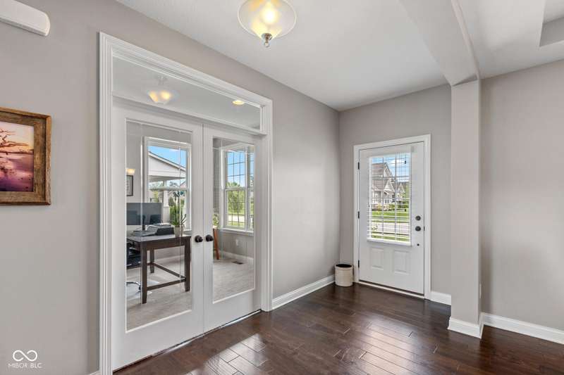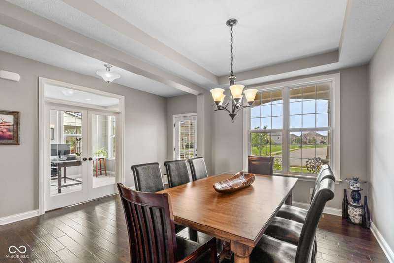 Welcome to this beautifully designed home that effortlessly blends function, style, and comfort. Upon entry, you're greeted by a dedicated office with French doors, perfect for remote work. The heart of the home is the bright, open kitchen featuring stunning white cabinetry, striking countertops, a large center island, stainless steel appliances, a double oven, and a spacious breakfast area. A walk-through butler's pantry with bar area adds even more storage and entertaining space. Just off the kitchen is a cozy seating area surrounded by windows that flood the space with natural light. The great room boasts a gorgeous stone gas fireplace and large windows, making it the perfect spot to gather. Upstairs, the expansive primary suite includes a sitting area, a luxurious ensuite with a soaking tub, a glass walk-in shower, dual vanities, and a generous walk-in closet. Three additional bedrooms offer flexibility. Two share a Jack-and-Jill bath, while the third enjoys its own private ensuite. The finished lower level provides an incredible amount of versatile space, complete with another full bath, and a kitchenette, making it ideal for entertaining, a home gym, movie nights, or multi-generational living. Step outside to a fully fenced backyard with a covered patio, offering the perfect blend of privacy and space. Close to so many amenities and a brief walk to the trails at the Fall Creek Woods Natural Area! This home truly has it all, style, space, and thoughtful design throughout!