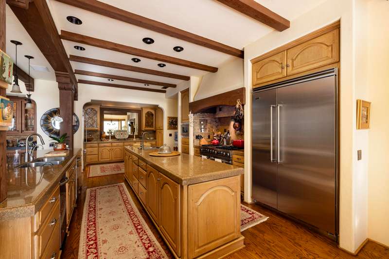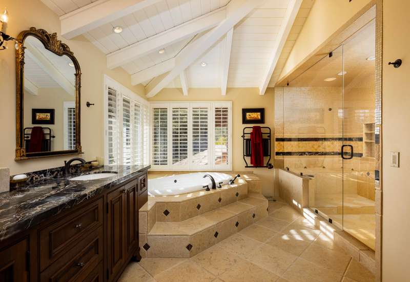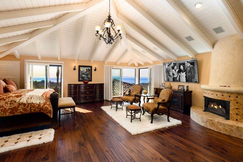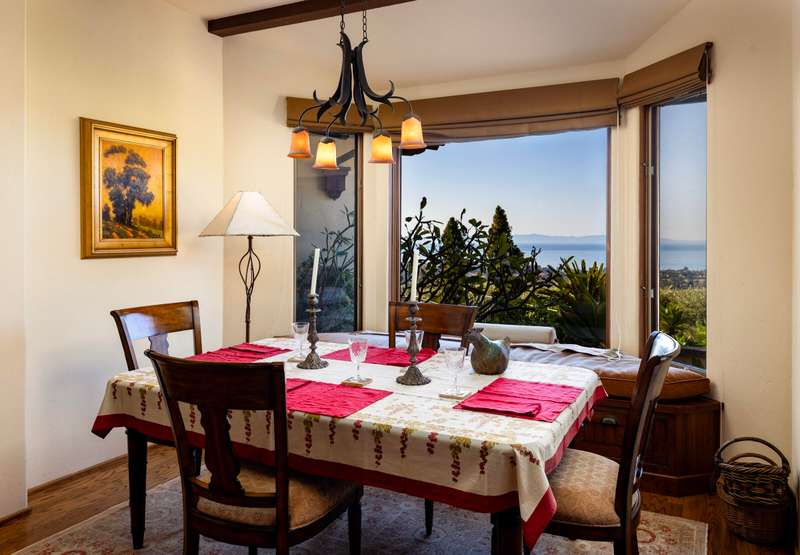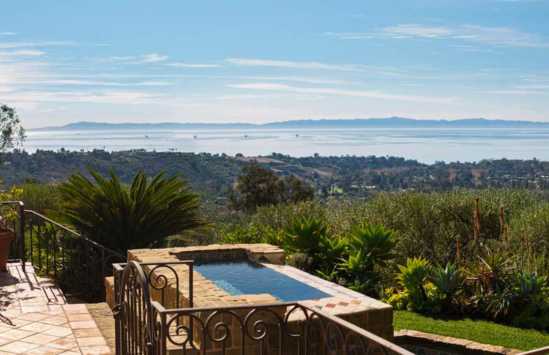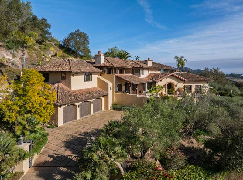 Defined by its vast ocean, island, & harbor views stretching over the Pacific, this estate offers an ever-changing panorama of tranquil horizons. The ocean's beauty fills every room with natural light & serenity. Grand arched entryway, intricate wrought iron door, soaring ceilings with exposed beams, & stone floors evoke the charm of a European villa. A magnificent stone fireplace stands as the core of the grand living room. This space is large enough for several seating areas all flowing out to the pool terrace and /or gardens. The Formal Dining Room opens to both the Living Room and has a private terrace complete with a fountain and lush landscaping. Expansive Gourmet Kitchen with View Breakfast room. The Kitchen features Stainless steel appliances as well as a large island with seating Commodious storage in the adjacent walk-in pantry and separate butler's pantry. Family Room flows from the Kitchen space to a covered entertaining terrace complete with barbeque. The Family Room has a custom fireplace as well as a full wet bar with bar seating and an exceptionally large temperature controlled Wine Cellar. A Library features a fireplace, built-ins as well as a full bathroom. Library/office has direct access to the gardens and terraces. The Grand Staircase leads to the Primary suite as well as 4 additional suites with several opening out to view terraces. The gracious Primary Suite is in its own wing and offers a sitting area w/fireplace, beamed ceilings as well as several ocean/harbor view terraces. The Primary Suite Bath features an enormous steam shower, separate jacuzzi style tub, dual vanities and commode closet. Two very large walk-in closets with custom built-ins complete the space. An additional custom spa is reached off the bedroom wing. Additional features include a gated entry, an oversize three car garage with storage, a Full Home generator, Car charging station, Private shared well for irrigation as well as a private gym room off the pool. This property also features numerous terraces, large lawn area, numerous fruit trees, and a glistening pool with spa and water feature.