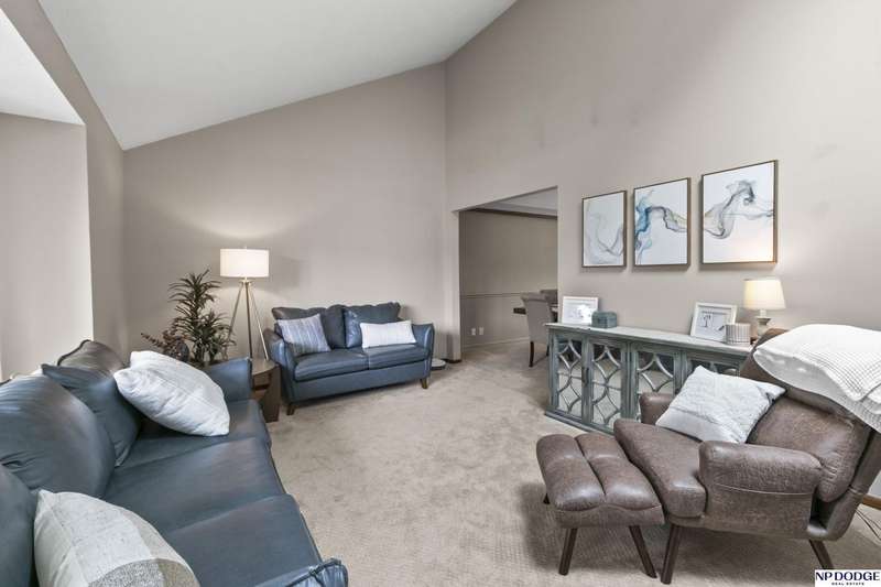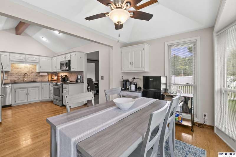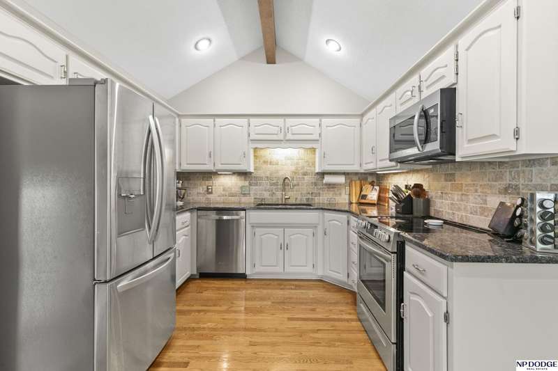 Beautiful pre-inspected home on CULDESAC location in Popular Papillion neighborhood! Set in a peaceful cul-de-sac, this spacious home offers comfort, style and plenty of room to grow. The kitchen is a show stopper with vaulted wood beam ceilings, granite countertops, stainless steel appliances, and gleaming wood floors. A bright bay window frames the dining area and overlooks the beautifully kept lawn with sprinkler system. Relax in the family room featuring a cozy brick gas fireplace place and floor to ceiling windows that fill the space with natural light. Step out to the backyard patio with a pergola and sunshade. -Perfect for outdoor entertainment. The oversized primary bedroom includes double closets and a beautifully refinished 3/4 bath with tile shower. The finished lower level offers plenty of flexibility with room for a rec room, home gym, playroom or extra storage. Located close to schools, shopping and Offutt AFB. Newer windows, furnace 2021, AC 2018, water heater 2013