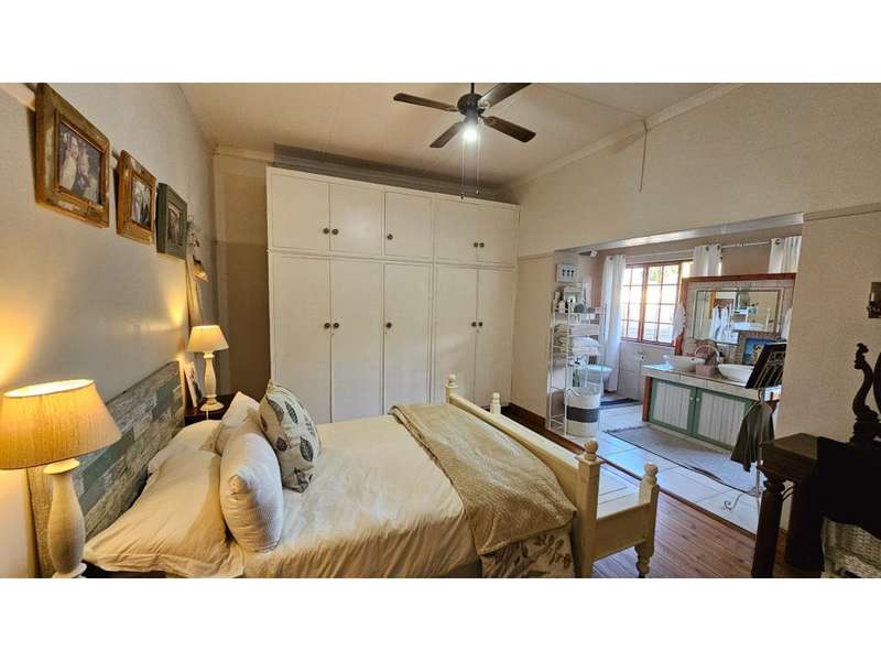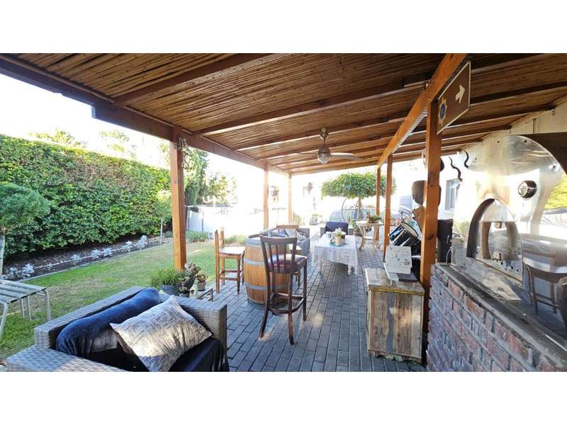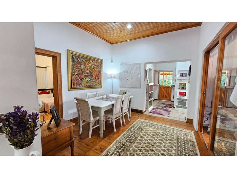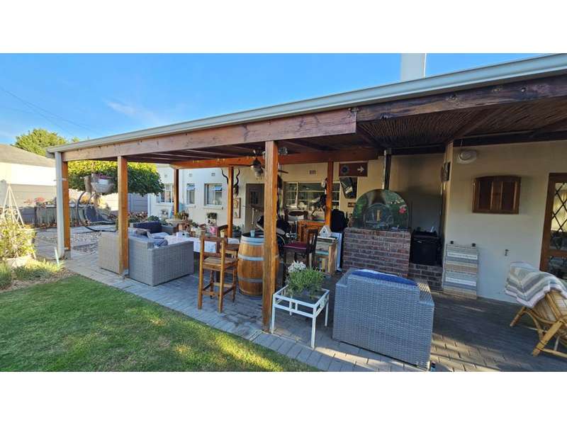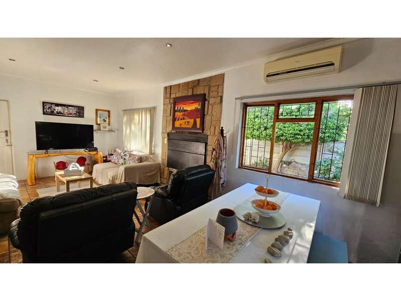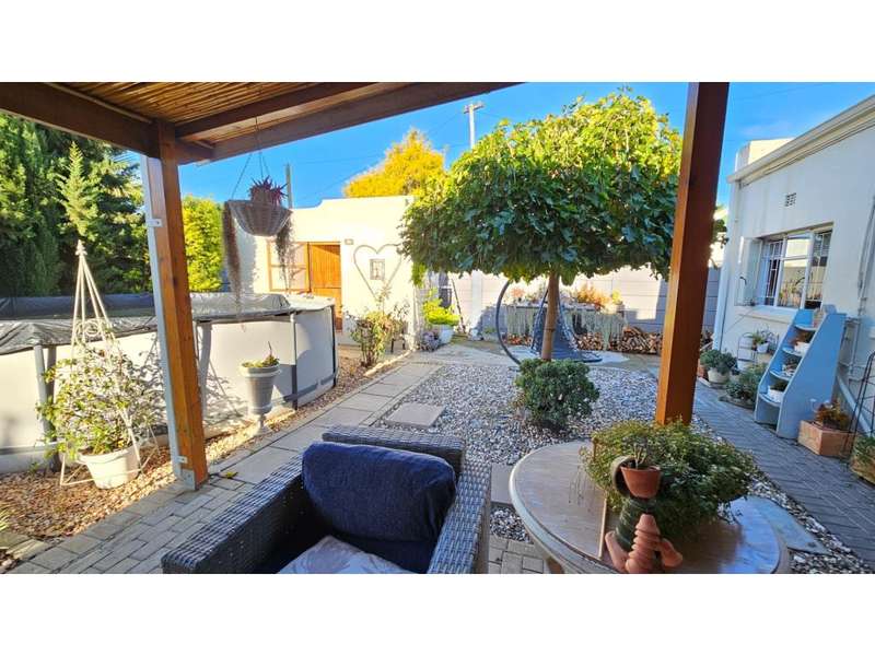 Original solid wood floors and higher ceilings adds to the charm of this lovely home. The open-plan living area features a built-in braai and doors that open to an intimate low maintenance back garden. Enjoy making homemade pizzas in the outdoor oven while taking in glimpses of the surrounding mountain views. Four bedrooms and two bathrooms are available. The home also includes a small office space, ideal for remote work or study. Extra features such as air conditioning, an irrigation system, a gas hob, and a solar geyser add convenience and efficiency. Additional highlights include an attic ready to be converted or used as extra storage space, and an outside storeroom that can double as a laundry area. This home displays warmth and character, move in ready.