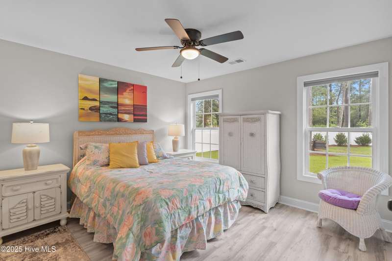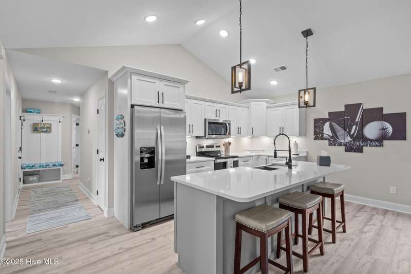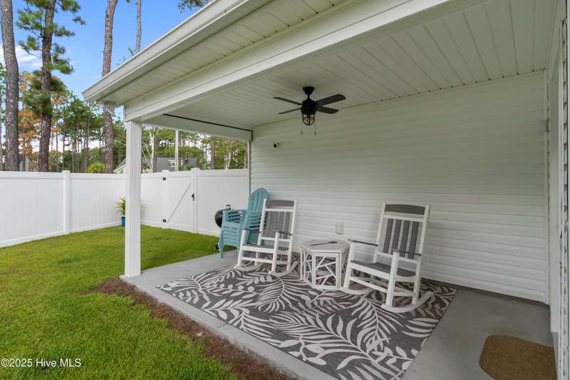 Like-new, this three bedroom two full bath coastal home is move-in ready! Fully furnished home is located in a vibrant beach community. Built just two years ago, this home offers everything you need for relaxed stylish living. A bright open concept home with high ceilings, sleek finishes and abundant natural light. Kitchen features stainless steel appliances, quartz countertops and a large quartz island with ample cabinetry for all your culinary needs. The primary bedroom has a luxurious ensuite bathroom with a walk-in shower. Two additional spacious and versatile bedrooms are ideal for guests or to have as a home office. Fully fenced backyard is low maintenance and offers lots privacy. Also, plenty of closet space and a huge floored attic. The two car garage comes equipped with a Tesla charger and a rider lawn mower! The HOA offers a sparkling pool, tennis courts and a playground. Step into this fully furnished modern home, perfect for buyers seeking a hassle free move or a lucrative vacation/rental home. Book your tour today!