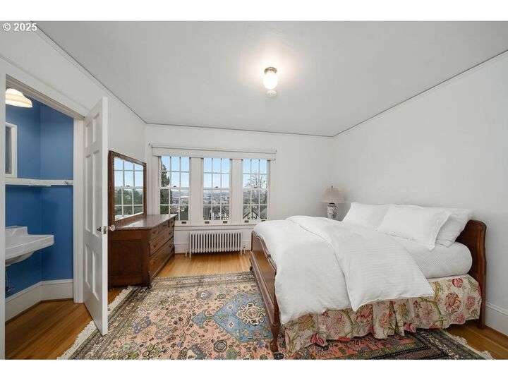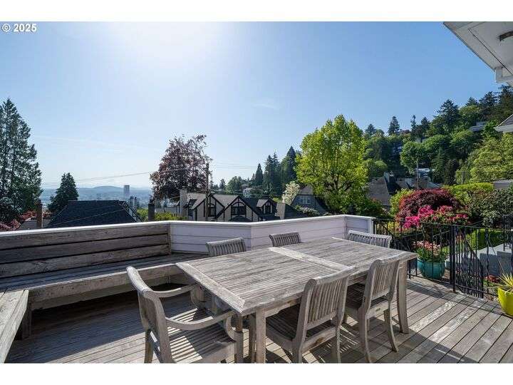 Welcome to one of Portland's popular, premier neighborhoods Kings Heights! Gracious 1920's Traditional proudly nestled into the hillside overlooking the City, offering the homeowner amazing 4 Mountain View's, Willamette River, Cascade Foothills, and City's amazing ever changing Vistas Day & Night. Period architecture greets you featuring spacious entry, higher ceilings, larger size rooms. Craftsmanship offering quality built-ins, wood floors, abundance of windows for natural light, wood burning fireplaces, wider hallways, all with comfortable floor plan for daily living needs & easy entertaining throughout! Elevated above the street for privacy as well as offering the homeowner and guests easy access from the quiet alley lane behind w/2 car garage, & parking pads for 2 to 3 additional cars. Main Floor features formal living room w/fireplace and dining room with unique period-built ins w/expansive views. Charming sunroom with wall of windows & 2nd fireplace adjoining the handsome home office/den room with ample bookshelves. A true Chef's kitchen featuring its own casual dining space which accesses exterior view deck, designer appliances, dual dishwashers, high end 5 burner gas range w/griddle, warming drawer, built in work desk & sitting area. Second floor has a unique 4 beds, 2 baths, and access to 2 view decks. Owner Suite has been remodeled over the years to enjoy updated dressing room, walk-in shower, dual sinks, & soaking tub. 3rd Floor offers Media Room and full 20's period bathroom as well as additional bedroom. Basement features laundry, storage, & additional bedroom & bath (Non-Conforming) LOCATION is a 10! Offering homeowner nearby proximity to Hillside Park, or all that beloved Forest Park has for recreation. Located in Lincoln School District offering the STEM Program for students. Short commute or walking distance to popular Alphabet District for Dining & Shopping. Nearby access WEST to HWY 26 to Nike, & Intel.