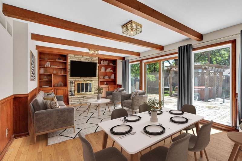 Welcome Home to 408 N. Saint James in Cresthill Manor! This beautifully maintained 4-bedroom, 2-bathroom home offers over 2,700 sq. ft. of living space on a lush 0.32-acre lot surrounded by mature trees. Designed for both comfort and entertaining, the home features two inviting main-level living rooms, a cozy woodburning fireplace, a bright and airy kitchen with breakfast bar and pantry, plus a main-floor bedroom and full bath for added convenience. The partially finished basement extends your living options with an additional recreation space perfect for movie nights or hobbies. Step outside and discover your own private retreatcomplete with an expansive deck, hot tub, and sparkling in-ground poolall set against a backdrop of mature landscaping. Whether youre hosting summer gatherings or enjoying quiet evenings at home, the backyard is an ideal escape. An attached 2-car garage adds everyday ease, while the walkable location keeps you close to schools, dining, and shopping. Nestled on a quiet, tree-lined street, this rare opportunity combines timeless curb appeal with the chance to own in one of East Wichitas most sought-after neighborhoods. Current taxes are based off of a county valuation of 360k. Home is being sold as-is where-is.