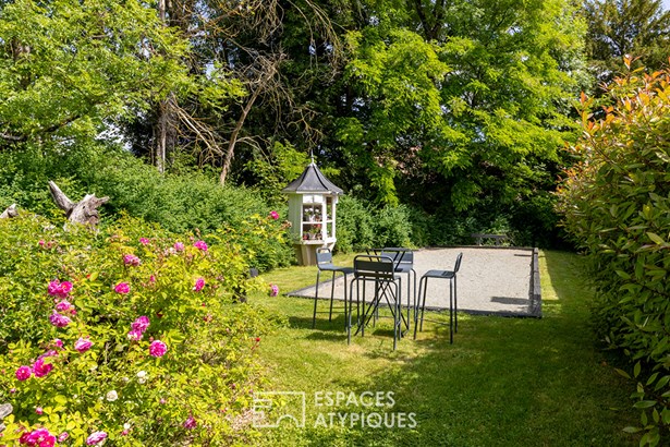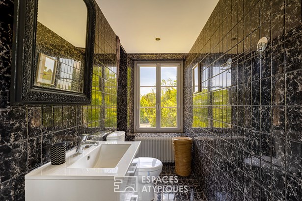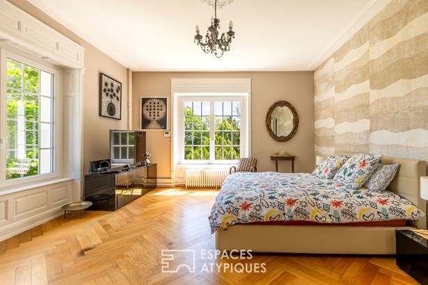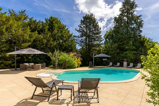 Located in a peaceful, leafy setting, this 465 m2 mansion stands in the heart of a 6,500 m2 wooded park, hidden from view. It elegantly combines old-world charm with contemporary comfort. Herringbone parquet flooring, mouldings and generous volumes complement the high-end amenities: swimming pool, outbuilding converted into a wellness area, summer kitchen, petanque court, double garage, carport and greenhouse. A rare property, designed for a privileged quality of life.