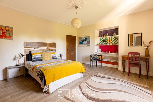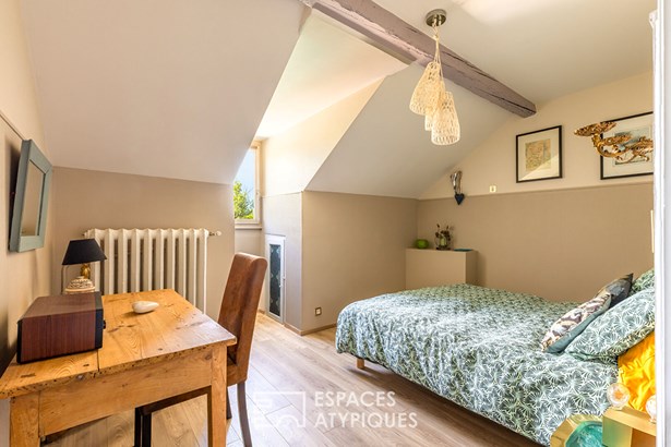On the first floor, the sleeping area consists of three bedrooms and two bathrooms, complemented by a separate apartment with a bedroom, a large living room, a shower room and a kitchen, ideal for entertaining or accommodating staff. The second floor houses four additional rooms, including a living room and three bedrooms, a shower room and an attic, offering multiple possibilities for conversion.