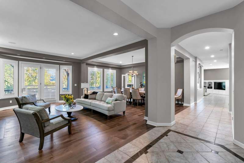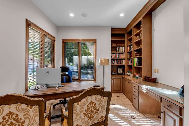Experience luxury and comfort in this exquisite Wilson Estates residence. Discover the pinnacle of sophisticated living in this stunning 4-bedroom, 4.5 bathroom home, complete with a dedicated office, plus it's perfectly located in the highly desirable Wilson Estates patio home community. Be welcomed by a spacious foyer that sets the tone for the elegance within. Light, warm wood floors, custom built-ins, a beautiful fireplace, formal dining room, and expansive wall-to-wall windows that fill the space with natural light strike your senses as you enter this stunning home. The gourmet kitchen boasts stainless steel appliances, including a Sub-Zero refrigerator, dual Dacor ovens with a warming drawer, a Dacor 6-burner gas range, and a wine fridge. It includes an oversized center island, a large pantry, granite countertops, and a breakfast nook. A cozy family room/ hearth room just off the kitchen offers custom built-ins and another charming fireplace. Unwind in the spacious master suite, featuring coffered ceilings, large wrap-around windows, a sitting area, and direct access to the large covered deck. The master bath provides a walk-in shower, whirlpool tub, dual vanity, and a massive walk-in closet with built-in dressers. The main level also boasts a dedicated office with built-ins, a generously sized second bedroom with a walk-in closet, plus a full en-suite bathroom. The lower level includes 9-foot ceilings, a striking fireplace, built-ins, and a drop-down projector screen perfect for ultimate movie nights. A fully equipped bar in the basement features a sink, refrigerator, ice maker, and ample countertop and storage space. The basement also offers a hallway bathroom, two additional bedrooms one being a full suite with its own private bath, seating area, walk-in closet, and walk-out patio. An oversized covered deck and patio overlook the spacious fenced yard, ideal for outdoor enjoyment. Recent upgrades: The home has been meticulously maintained with fresh interior and exterior paint, new carpet in the upstairs master and second bedroom, newer tile in the master bathroom, and newer wood-framed windows in the guest bedroom suite and one in the master bedroom. New Davinci tile roof, newer HVAC units, hot water heaters, new driveway and patio... the upgrades and benefits are just outstanding! This patio home community provides exceptional convenience with included lawn maintenance, trash services, and snow removal. Situated just a short walk to nearby shopping and entertainment, and only minutes from top-rated schools - this home and this area are tough to beat!