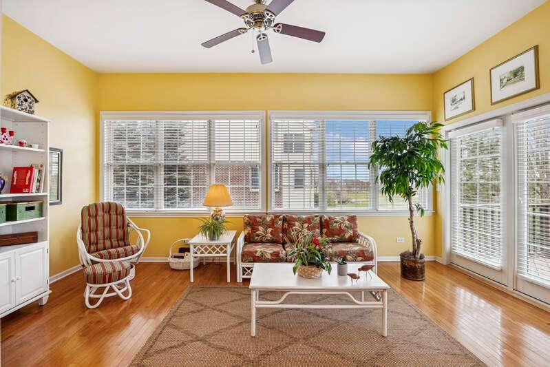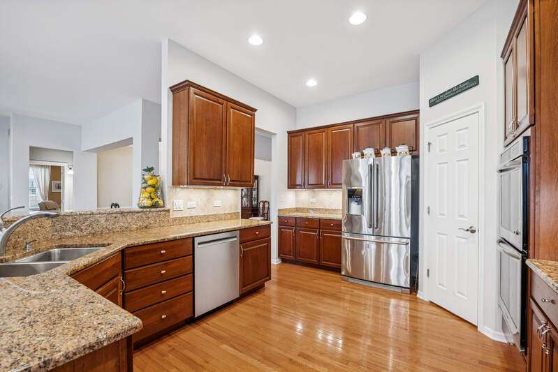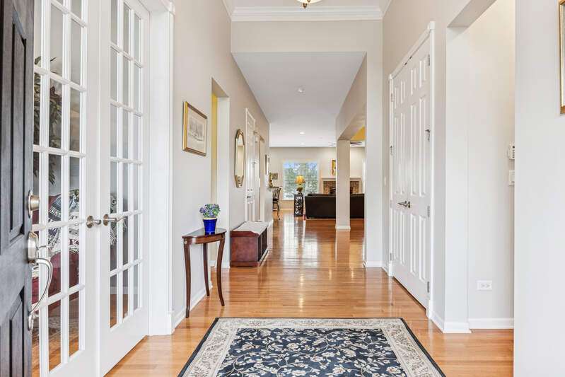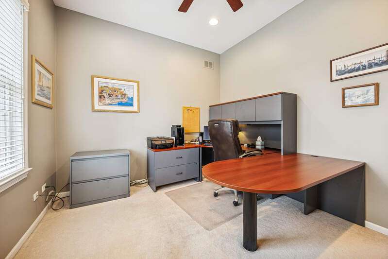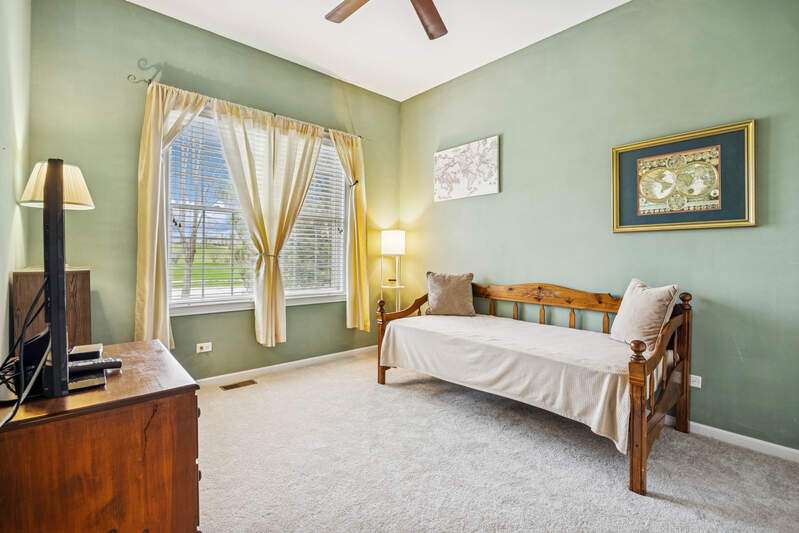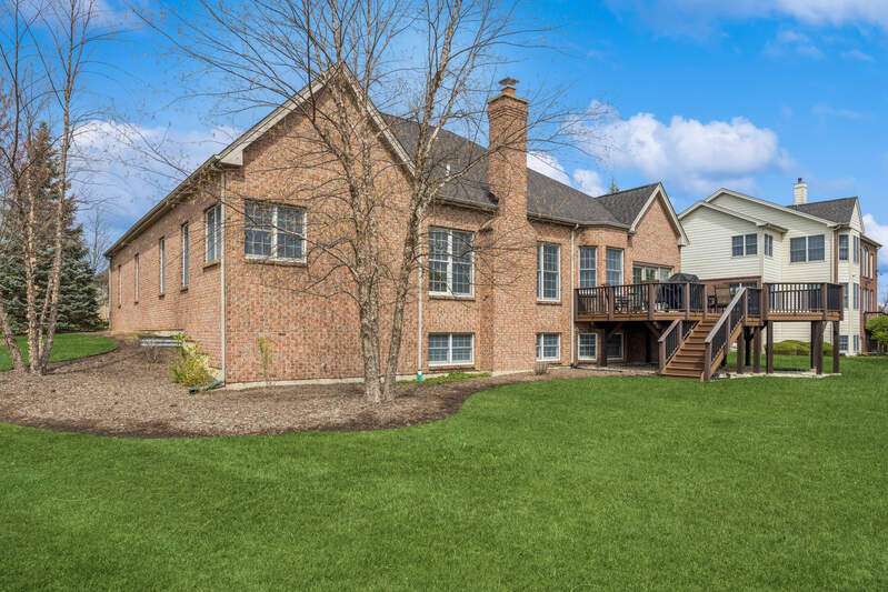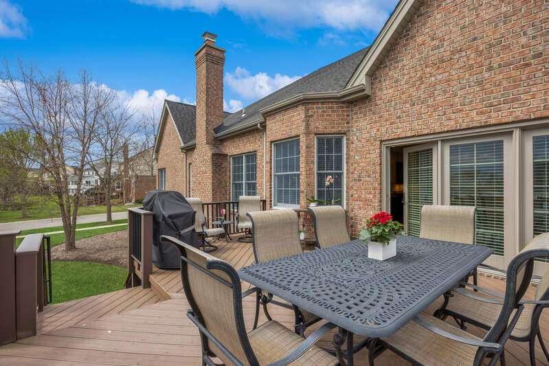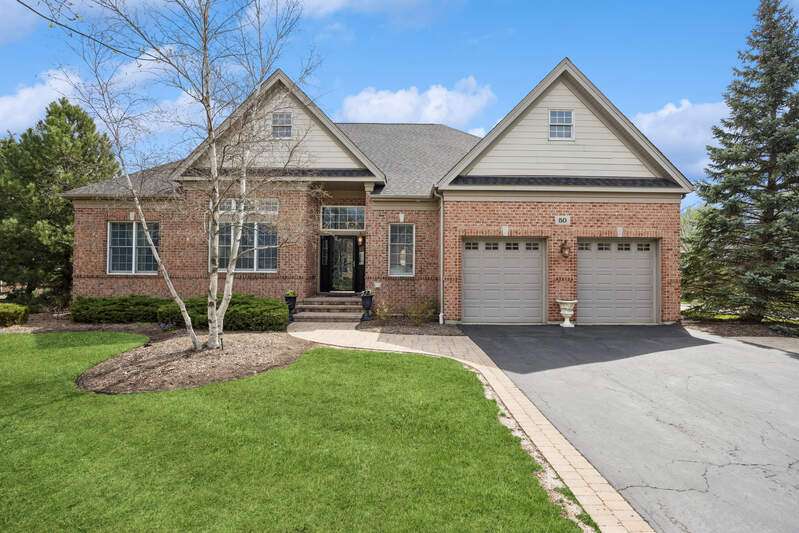 Extremely RARE Hawthorn Woods County Club RANCH Golf Villa (3 /2.1) on the 4th green of the Arnold Palmer Signature Designed golf course! Natural light floods this entire open split-bedroom floor plan. Just off the gracious Foyer are French Doors leading to the intimate Study. The elegant Dining Room has a striking tray ceiling and custom millwork; it is open on two sides: facing the Kitchen and into the spacious Family Room with a brick gas-burning fireplace. The chef's dream Kitchen is filled with Stainless Steel appliances and a sweeping bar-height granite countertop provides additional dining options or an inviting buffet area. Double electric wall ovens, 5 burner gas cooktop, dishwasher, microwave oven and walk-in Pantry. There are three additional granite counter tops with under-cabinet lighting to expand your work areas. The Kitchen is open to the Family Room and a separate Breakfast Room with its own Bay Window. The Florida Room with two walls of windows also leads to the custom-built TimberTeck deck and staircase. The Primary Bedroom Suite is huge; boasts a walk-in closet with custom built cabinets, a tray ceiling and a spa-style bathroom (15'5" x 9'5") with jetted tub, separate walk-in shower, private water closet, two individual sinks and vanities. Separate Bedroom Wing: One Bedroom is currently used as an office. The other bedroom has new wall-to-wall carpet. There is an additional 2,966 square feet in the unfinished English Basement with a roughed-in bathroom waiting for you to design your own special retreat! NEW Roof (2025). Front Entrance is enhanced with paver-brick porch, steps and sidewalk. Driveway is enlarged with parking for an additional car with paver-brick pad. In-ground sprinkler system. Hawthorn Woods Country Club offers family members of all ages many activities: Fitness Center, swimming, tennis on Har-Tru clay courts, pickleball, platform tennis, bocce ball and access to golf! $2,000 required one time Initiation fee to Hawthorn Woods Country Club at Closing. Please see "Updates and Features" in Additional Information.