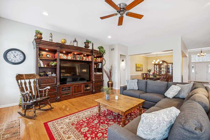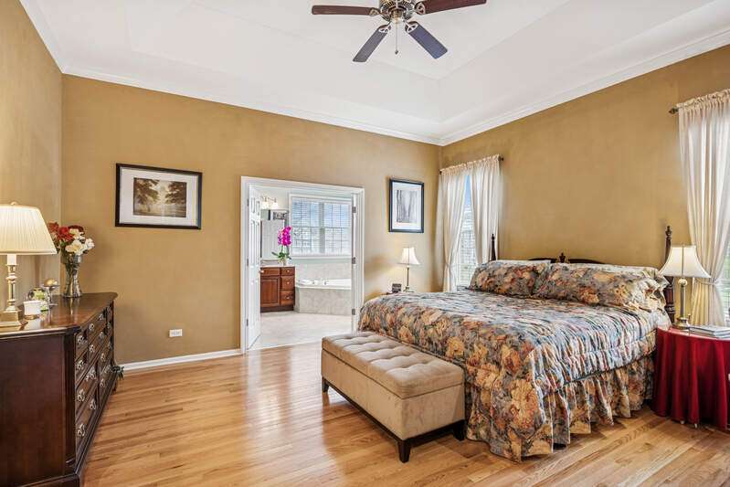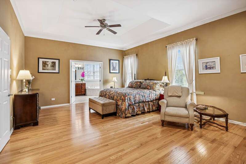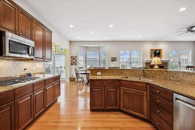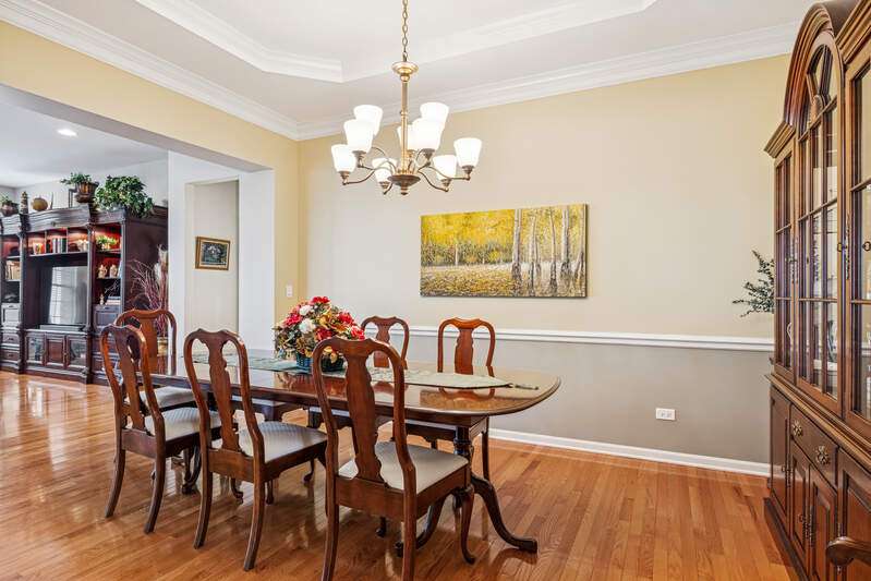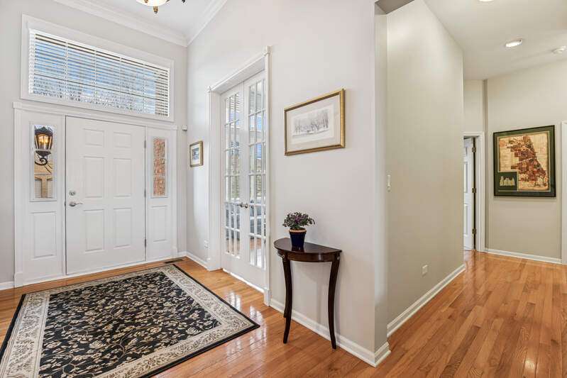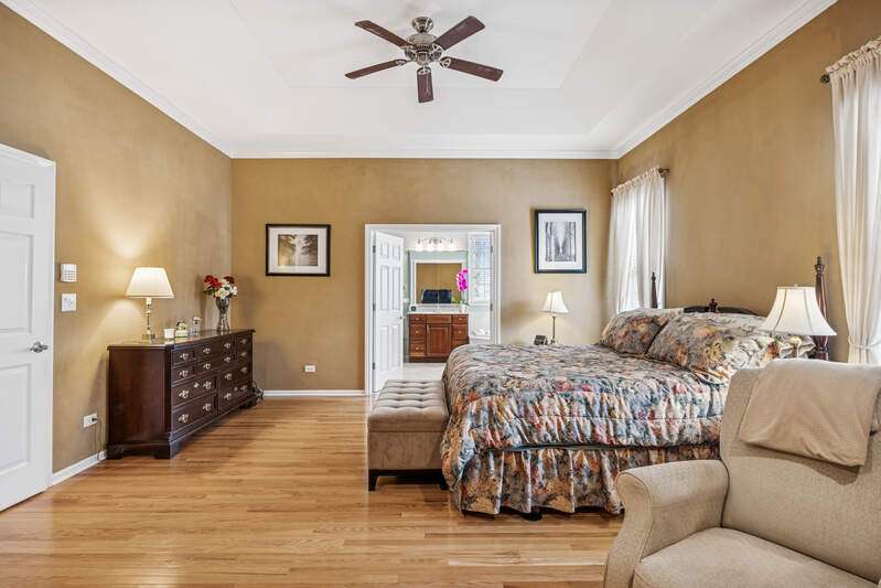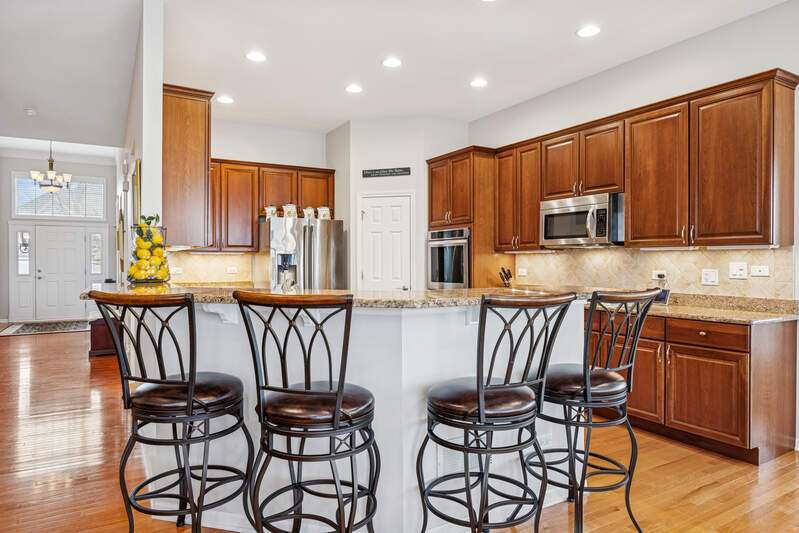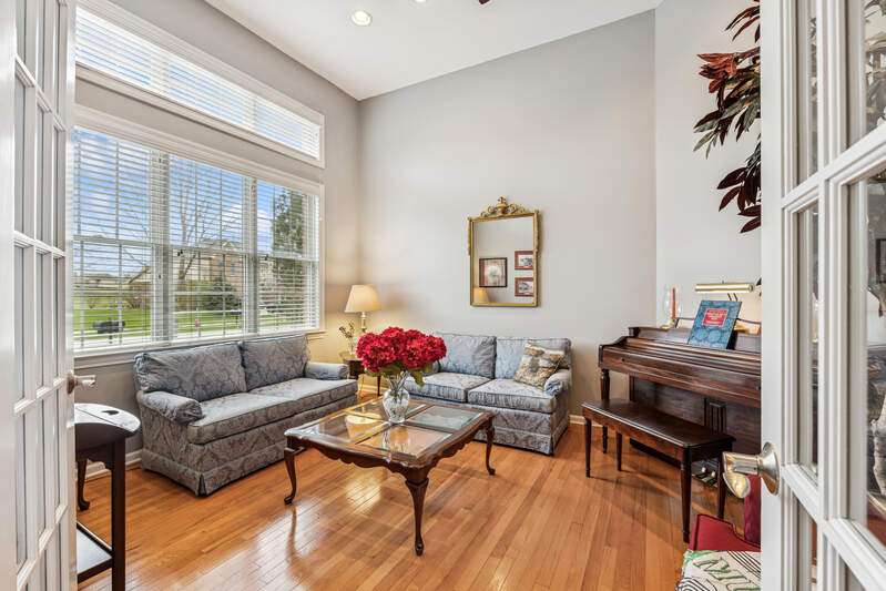 Extremely RARE Hawthorn Woods County Club RANCH Golf Villa (3 /2.1) on the 4th green of the Arnold Palmer Signature Designed golf course! Natural light floods this entire open split-bedroom floor plan. Just off the gracious Foyer are French Doors leading to the intimate Study. The elegant Dining Room has a striking tray ceiling and custom millwork; it is open on two sides: facing the Kitchen and into the spacious Family Room with a brick gas-burning fireplace. The chef's dream Kitchen is filled with Stainless Steel appliances and a sweeping bar-height granite countertop provides additional dining options or an inviting buffet area. Double electric wall ovens, 5 burner gas cooktop, dishwasher, microwave oven and walk-in Pantry. There are three additional granite counter tops with under-cabinet lighting to expand your work areas. The Kitchen is open to the Family Room and a separate Breakfast Room with its own Bay Window. The Florida Room with two walls of windows also leads to the custom-built TimberTeck deck and staircase. The Primary Bedroom Suite is huge; boasts a walk-in closet with custom built cabinets, a tray ceiling and a spa-style bathroom (15'5" x 9'5") with jetted tub, separate walk-in shower, private water closet, two individual sinks and vanities. Separate Bedroom Wing: One Bedroom is currently used as an office. The other bedroom has new wall-to-wall carpet. There is an additional 2,966 square feet in the unfinished English Basement with a roughed-in bathroom waiting for you to design your own special retreat! NEW Roof (2025). Front Entrance is enhanced with paver-brick porch, steps and sidewalk. Driveway is enlarged with parking for an additional car with paver-brick pad. In-ground sprinkler system. Hawthorn Woods Country Club offers family members of all ages many activities: Fitness Center, swimming, tennis on Har-Tru clay courts, pickleball, platform tennis, bocce ball and access to golf! $2,000 required one time Initiation fee to Hawthorn Woods Country Club at Closing. Please see "Updates and Features" in Additional Information.