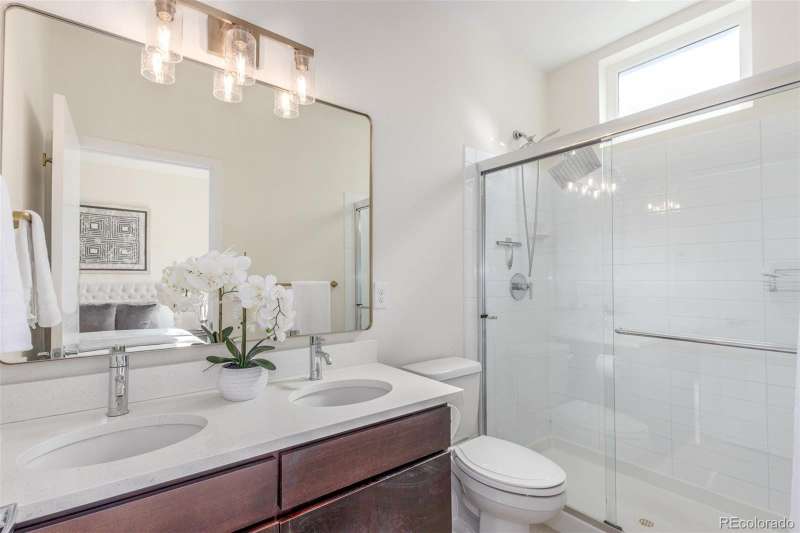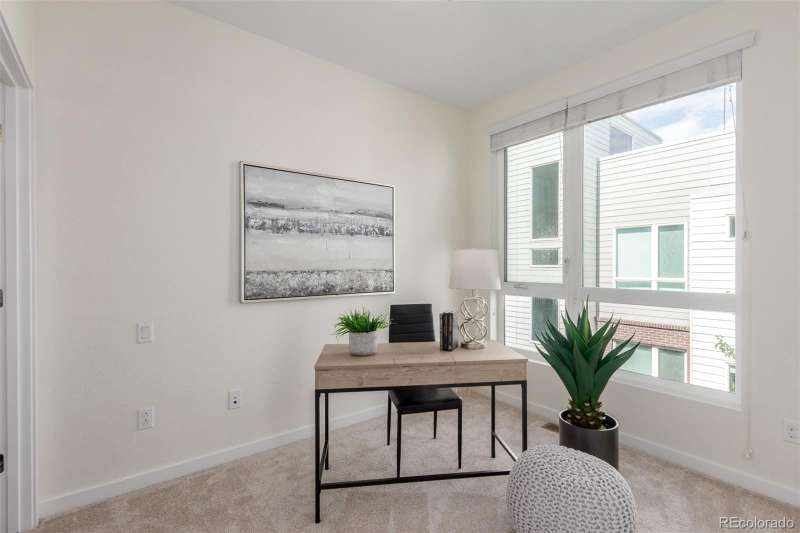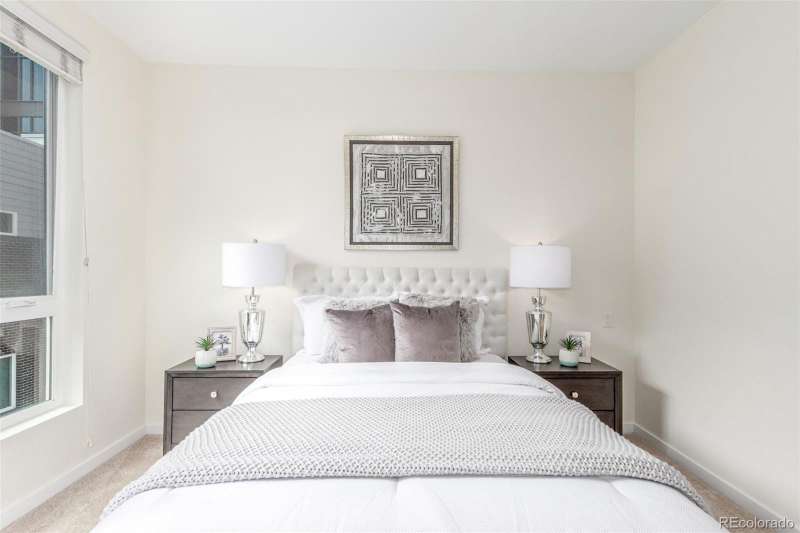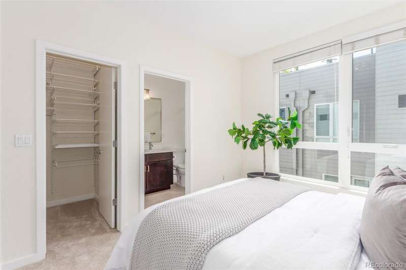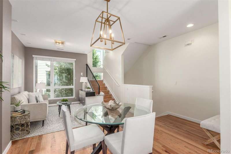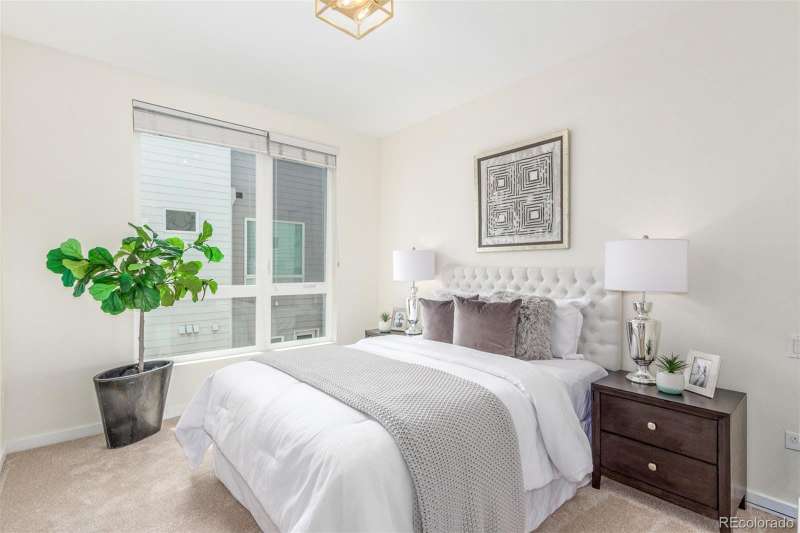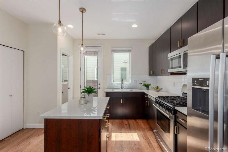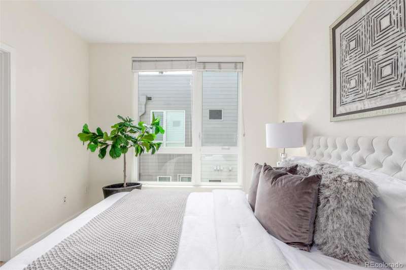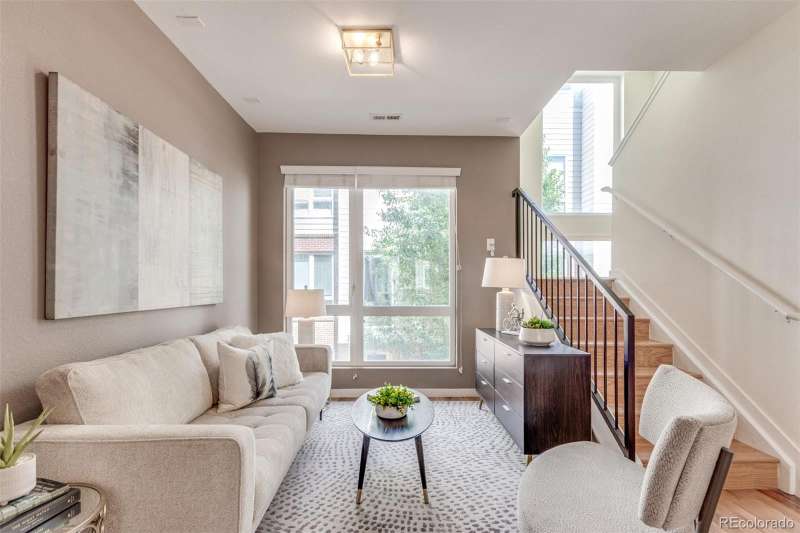 Refined. Private. Unmistakably Denver.Tired of noisy elevators and impersonal lobbies? Welcome to your private, design-forward retreat in the heart of RiNo. This two-bedroom, two-and-a-half-bath walk-up townhome offers an exclusive alternative to high-rise livingblending sleek, modern comfort with effortless access to Denvers most dynamic neighborhood.Built in 2014 and meticulously maintained, this home has been thoughtfully updated with on-trend gold finishes throughout, elevating the lighting, cabinet hardware, and fixtures with a luxe, modern touch. Inside, you'll find a light-filled open floor plan, hardwood flooring, and expansive windows that frame the space in natural light. This home also features new interior paint throughout and brand new carpet.The chefs kitchen features Bosch appliances, quartz countertops, a designer backsplash, rich wood cabinetry, and an oversized islandideal for everything from morning coffee to hosting happy hour. Upstairs, two private bedroom suites each offer their own ensuite baths. The primary suite features a walk-in closet, dual vanities, and spa-like finishes that feel refreshingly elevated.And then theres the crown jewel: a private rooftop deck with panoramic views of the city skyline and the Rocky Mountains. Outfitted with a gas line and electrical, its fully equipped for unforgettable summer nights, rooftop dining, and ballpark firework views.Additional features include: Attached oversized garage accommodates a large SUV and has a flex space that can be used as a gym or office Central heating + A/C GE stackable washer/dryer Custom window coverings HOA covers maintenance of the grounds, sewer, snow removal and water Just three blocks to the RiNo light rail stop, and moments from Denvers top restaurants, breweries, galleries and coffee shops, this is elevated urban living without compromise.Welcome to 3425 Larimer #105. A more personal, polished way to live RiNo.