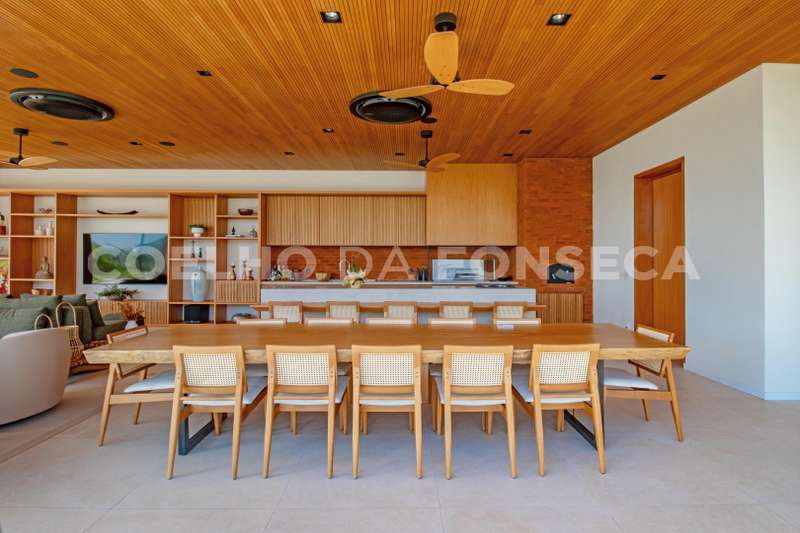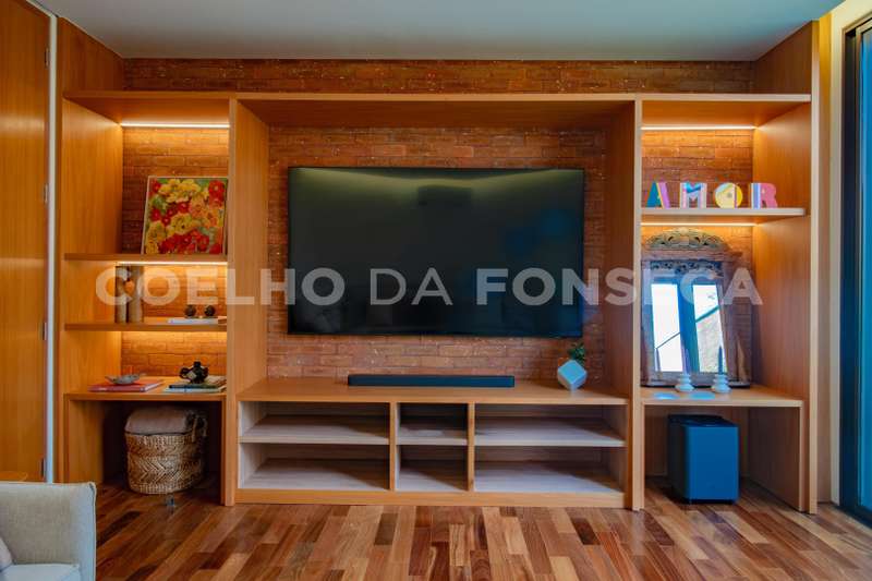 Ar-condicionado, ventiladores de teto, sistema de som e TV também ligados à automação.