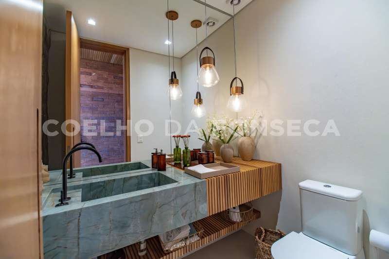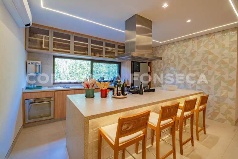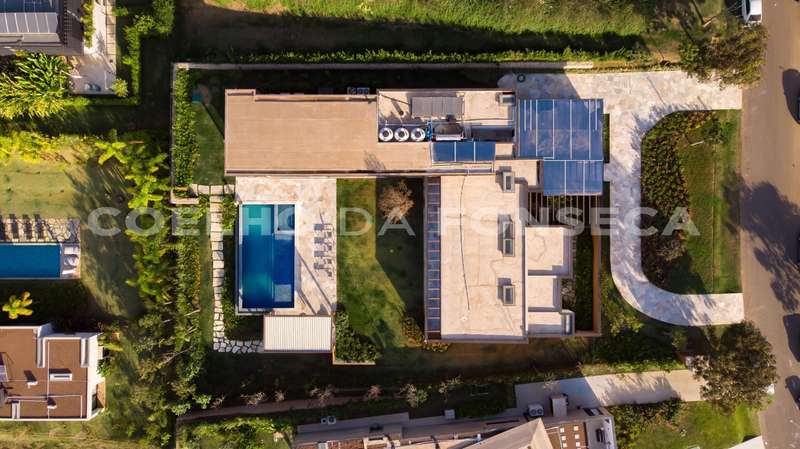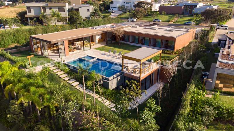 Casa em Condomínio no bairro Pinheirinho com 611m² área construída, 5 dormitório(s), 5 suíte(s), 6 vaga(s), 8 banheiro(s), piscina, escritório, depósito, mobiliado (a), ar condicionado, dep. de empregados, varanda, casa terrea.