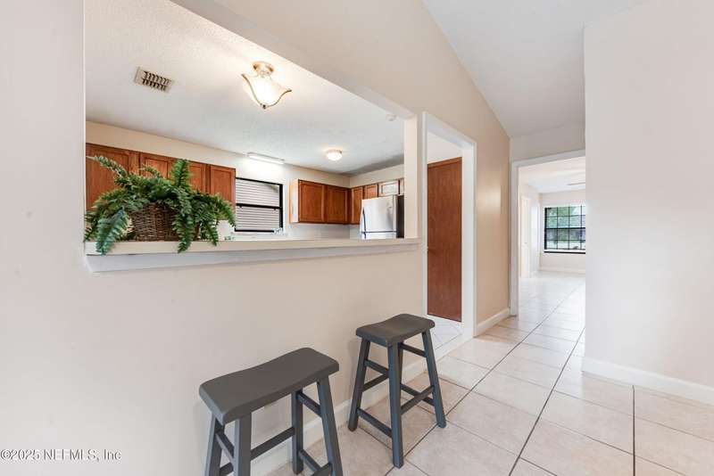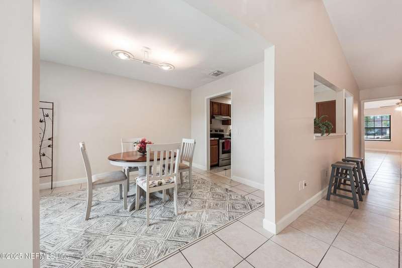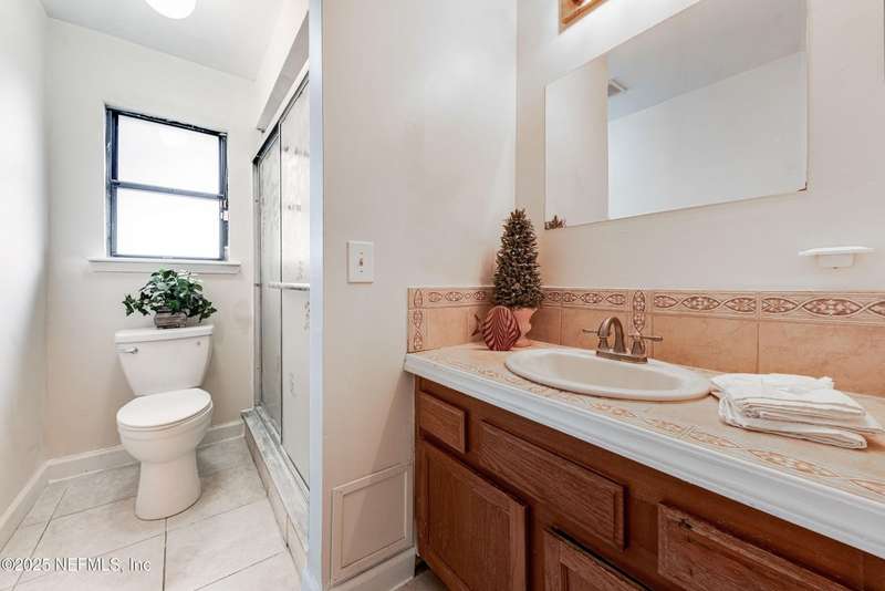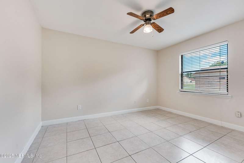 Welcome to your safe shelter - charming and move-in ready. This freshly painted, 3-bedroom, 2-bath home features tiled floors throughout, a bright and open floor plan, and a spacious layout perfect for both entertaining and everyday living. Step into a welcoming living room that flows into the dining area and an inviting kitchen with modern appliances and plenty of cabinet space. The primary suite includes a private en-suite bathroom with a jacuzzi tub and separate shower, and 2 large closets. Enjoy indoor laundry, and a 2-car garage. Relax or entertain outdoors in the fenced backyard with a patio-ideal for grilling, pets, or peaceful evenings under the stars. Located in a quiet, well-kept neighborhood with no HOA, this property offers freedom and flexibility. Close to Mayport NAS, Jacksonville's beaches, restaurants, and the popular Ed Austin regional park, offering golf, ball fields, hiking & biking trails and more.