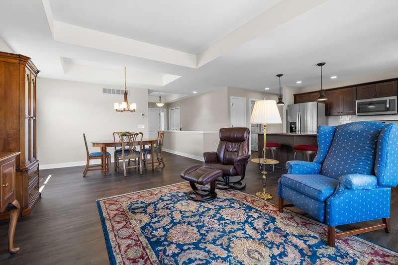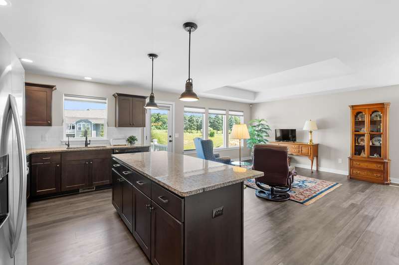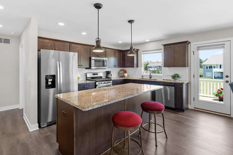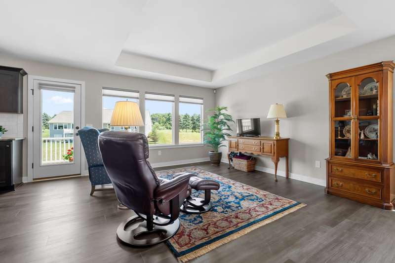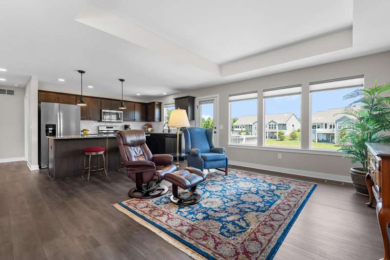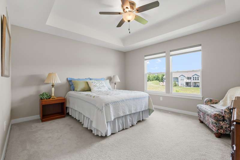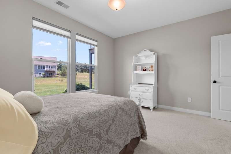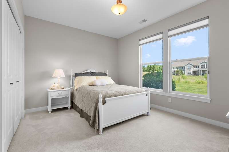 Enjoy easy living just steps from Angels Crossing Golf Course in this beautifully designed and lovingly cared for 3-bedroom, 3-bath condominium. This one owner home, with a desirable open floor plan, is filled with natural light, and the main floor features a spacious primary suite and a bright living room that opens to a private deck—perfect for relaxing or entertaining. The finished lower level is a standout feature, offering a large family room, a private bedroom, a full bath, and ample storage—ideal for guests, hobbies, or extended living space. Thoughtfully laid out and move-in ready, this home blends comfort, style, and convenience in a sought-after location.