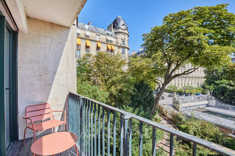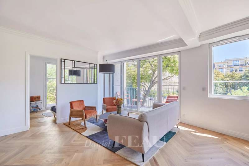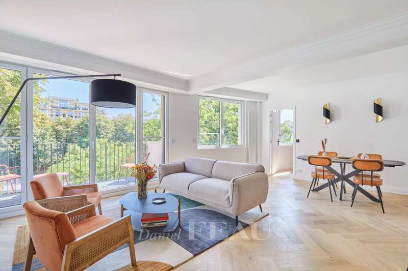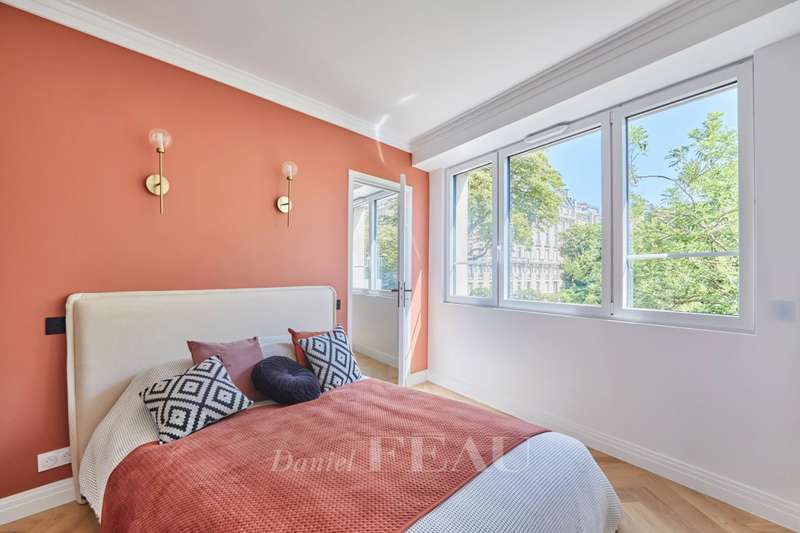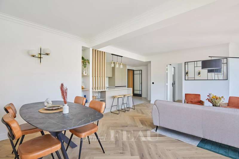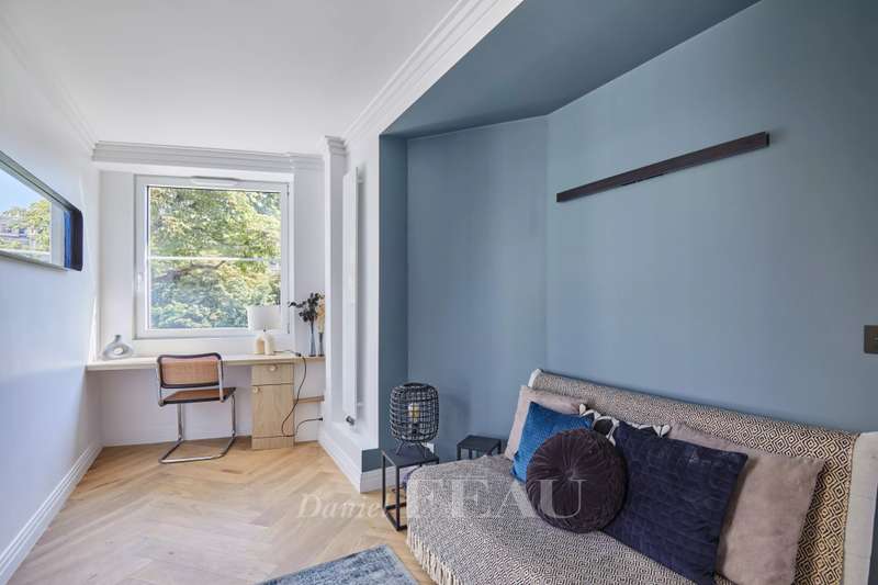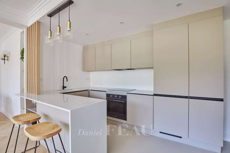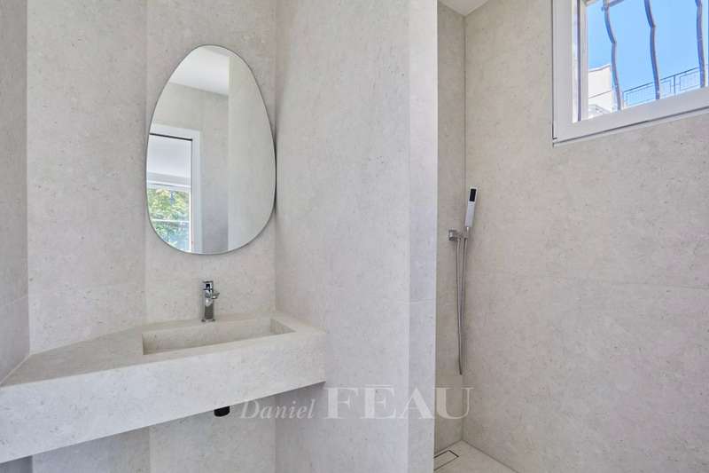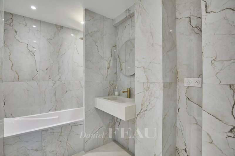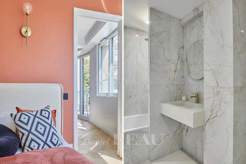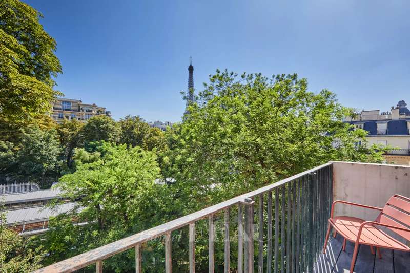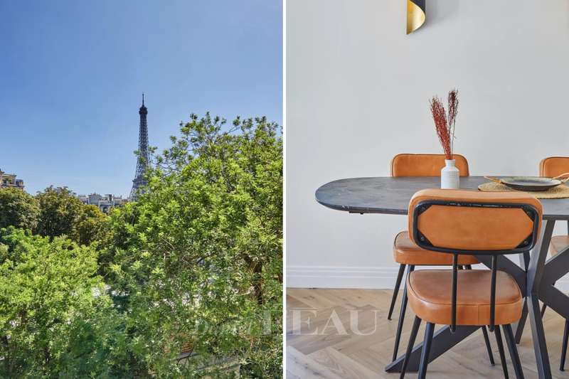 This entirely renovated 80 sqm apartment is on the 7th floor of a luxurious mid 20th century building with a lift located in the immediate vicinity of rue de Passy and the shops. Beautifully appointed and enjoying an open view of the Eiffel Tower, it includes a bright living/reception room opening onto a balcony, a fully equipped open-plan kitchen, a bedroom with a shower room and bespoke dressing room, and a study or second bedroom with a shower room opening onto a balcony.