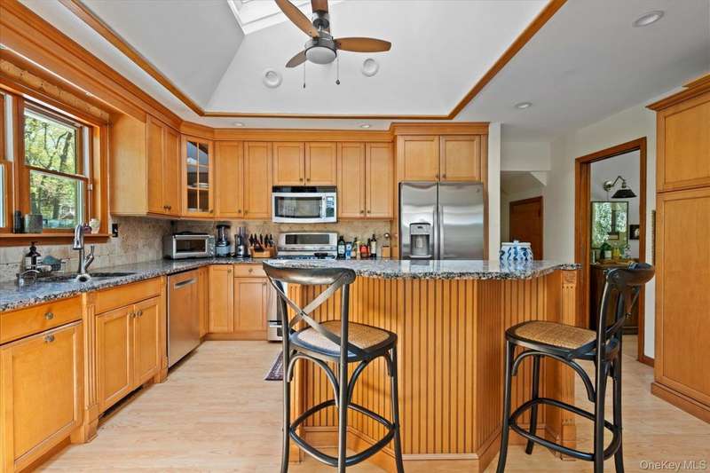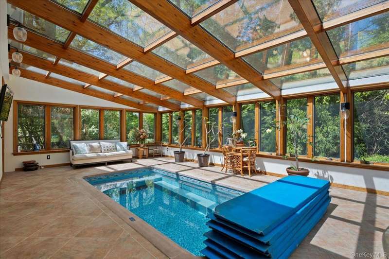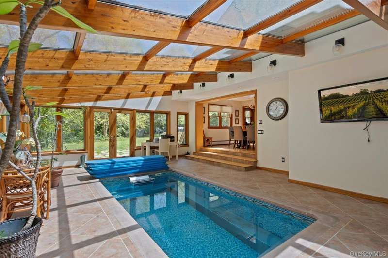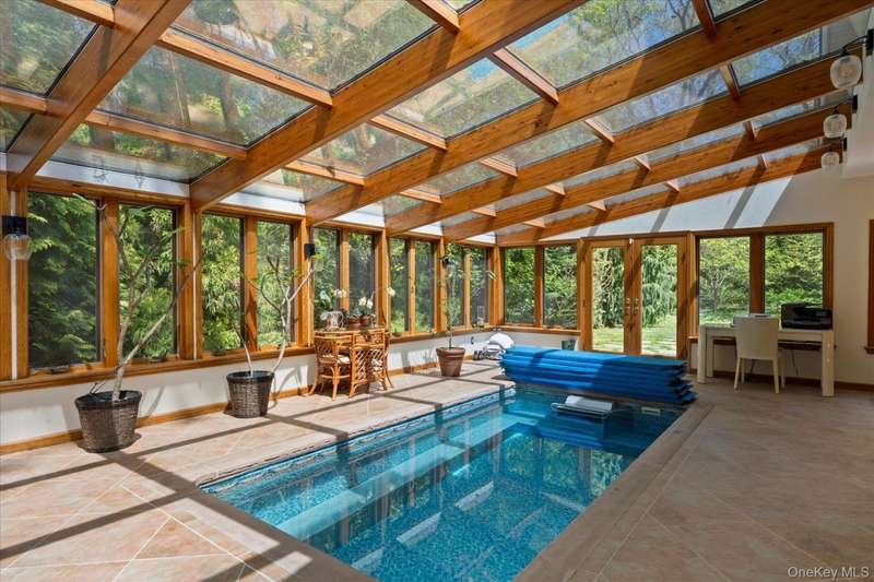 Built to Last with Thoughtful Details ThroughoutOriginally constructed and owned by a skilled masonry family, this home is built like a rock-offering exceptional craftsmanship and unique features throughout. Hidden within the home is a bomb shelter, ideal for conversion into a distinctive wine cellar. The heated two-car garage, equipped with two lifts, comfortably accommodates up to four vehicles-perfect for car enthusiasts or collectors. Step into the Four-Season Room, where a heated in-ground lap pool invites year-round relaxation. Outdoors, the private backyard-curated by a landscape designer-boasts seasoned flowering gardens that provide a stunning retreat in every season. Beautiful stone walkways lead to impressive outdoor amenities, including a 5x14 blue stone built-in BBQ and a sunken 22' stone firepit-ideal for entertaining. A spacious backyard shed ensures ample storage for contractor equipment or could be converted into a beautiful out door cabana, Inside, the updated eat-in kitchen (EIK) shines with granite countertops, a tumble-marble backsplash, and newer appliances. Two brand-new bathrooms, both featuring radiant heated floors, add modern comfort. Additional features include: Anderson windows, 200-amp electric with a whole-house military-grade generator, Whole-house water filtration system, New irrigation system (IGS) (2023), Siding (2015), Roof & Windows (2009) And much more! This property seamlessly blends durability, luxury, and functionality-creating an exceptional living experience.
