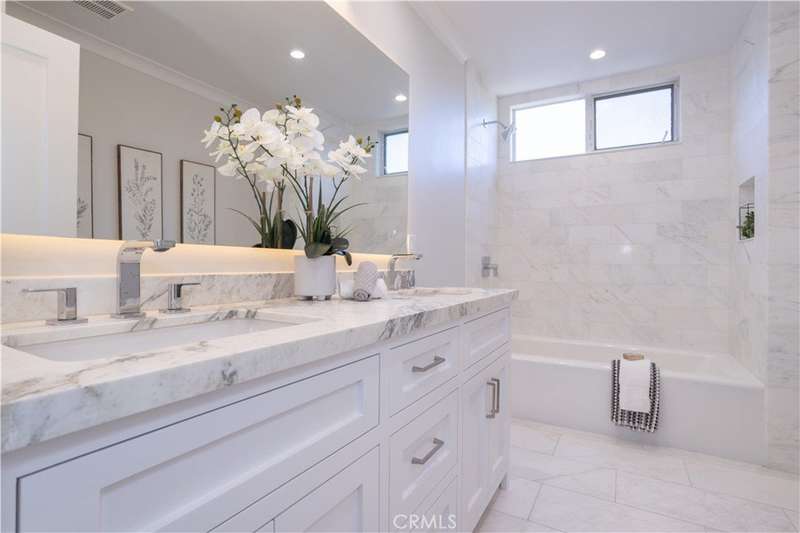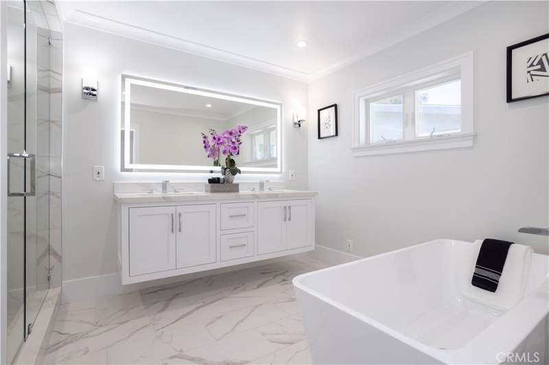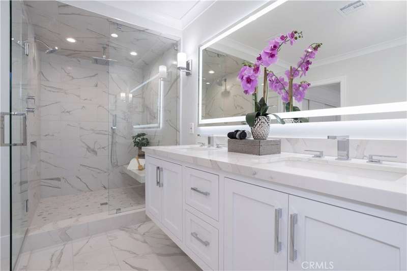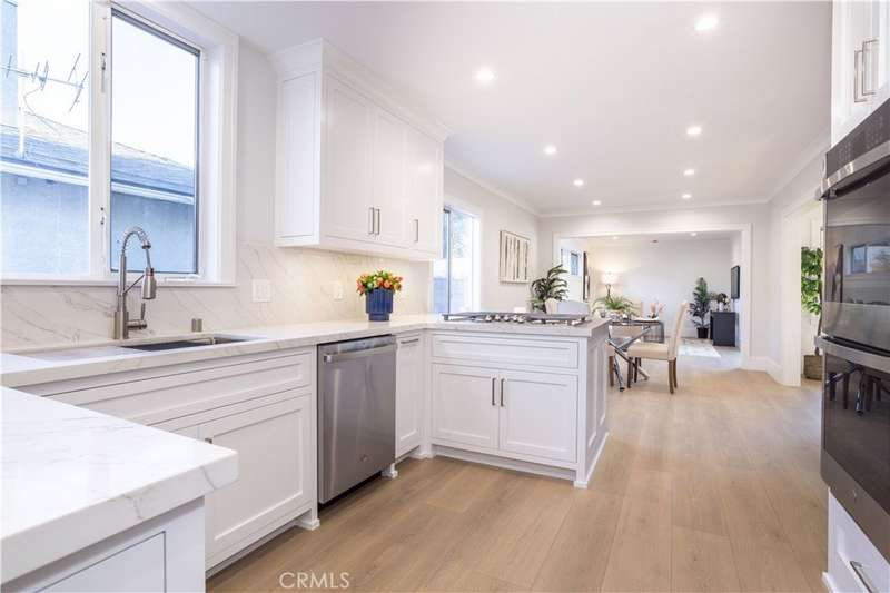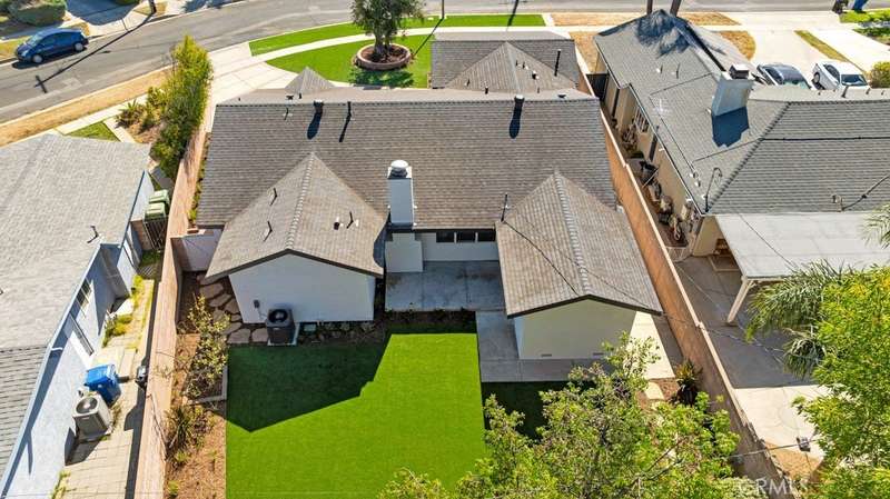 $100,000 PRICE REDUCTION! This house has all the bells and whistles and is the one you've been waiting for! This Granada Hills gem blends modern luxury with timeless style in one of the area’s most coveted neighborhoods. Attractive curb appeal with fresh exterior paint, a wide driveway with brick inlay, lush turf framed by mature trees, and a sleek new cool shingle roof. Inside, nearly 1,900 sq. ft. of sunning living space delivers 3 spacious bedrooms and 3 fully renovated baths with high-end finishes. At the heart of it all, the chef’s kitchen shines—custom maple cabinetry, quartzite counters, GE stainless steel appliances, a farmhouse sink, and a breakfast bar that begs for morning coffee. A separate dining area and designer laundry room with full pantry, quartz counters, and custom cabinetry add form and function. Two living spaces keep the vibe versatile: a cozy living room with a stone hearth fireplace and a sunlit family room that flows right into the entertainer’s backyard. The flexible layout includes two dreamy primary suites. The main retreat is spa-inspired with an oversized walk-in shower with triple showerheads: rainfall, handheld, and fixed, a freestanding soaking tub, floating quartzite vanity, porcelain floors, and a private water closet. The second suite features its own luxury bathroom with an expanded shower, custom vanity, and built-in linen storage. A third bedroom and chic hallway bath round out the interior. Throughout, no detail is spared: wide-plank luxury vinyl flooring, crown molding, 6-inch baseboards, designer paneled doors, double-pane windows with custom casings, fresh paint inside and out, recessed lighting, updated copper plumbing, newer HVAC, and an attached 2-car garage. Step outside to your private backyard retreat—lush synthetic turf, mature landscaping, raised brick planter beds with drip irrigation, and plenty of space to entertain or just chill. Close to top-rated schools, parks, shopping, and easy freeway access, this home doesn’t just check the boxes—it sets the bar.