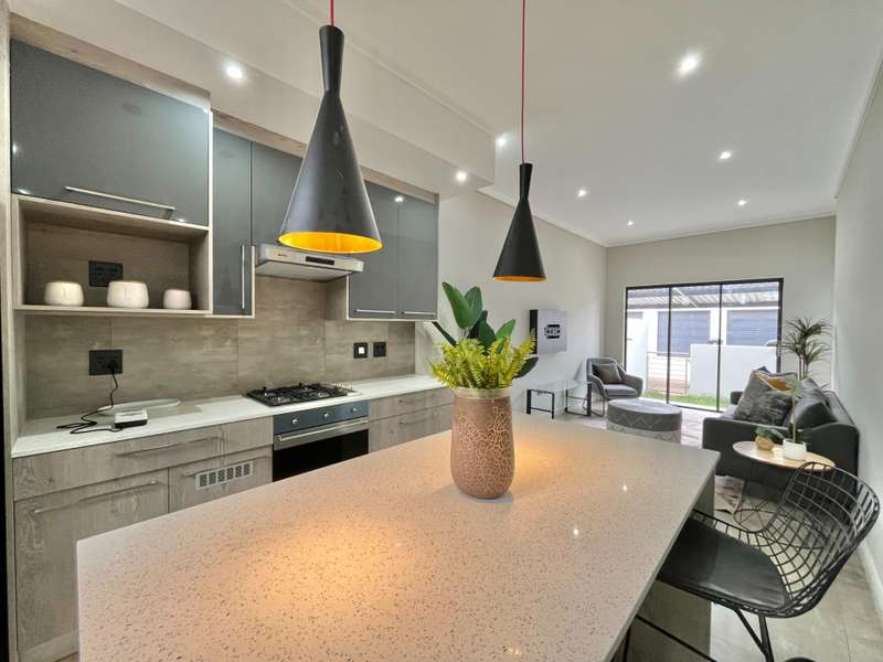 Welcome to this stunning property featuring 2 bedrooms, 2 bathrooms, and a range of desirable amenities. Situated in a secure complex with 24-hour security and an access gate, this home offers both comfort and peace of mind. As you enter, you'll appreciate the convenience of two covered parking spaces, ensuring protection for your vehicles from the elements. The property is further secured with electric fencing and a security post, providing an added layer of safety for you and your belongings. The interior of the home is thoughtfully designed, offering a spacious and well-lit environment. The two bedrooms are fitted with built-in cupboards, allowing for ample storage space. One of the bedrooms features an en suite bathroom, providing privacy and convenience. The property boasts a dining area where you can enjoy meals with family and friends. The kitchen is well-appointed and offers a functional layout, making cooking a pleasurable experience. The lounge area is inviting and serves as the perfect space to relax and entertain guests. From here, you can access the outdoor areas, including a fenced garden. Whether you want to unwind in the open air or enjoy outdoor activities, the garden provides a serene and private setting. The property features paved areas, ensuring easy access throughout the premises and providing a neat and polished look. One of the notable features of this property is that it allows pets, making it a great choice for animal lovers who want their furry companions to enjoy the space alongside them. In summary, this exceptional property offers 2 bedrooms, 2 bathrooms, two covered parking spaces, 24-hour security, an access gate, built-in cupboards, a dining area, electric fencing, an en suite bedroom, a fenced garden, a well-equipped kitchen, a lounge, paving, and pet-friendly policies. Take advantage of this opportunity to own a comfortable and secure home.