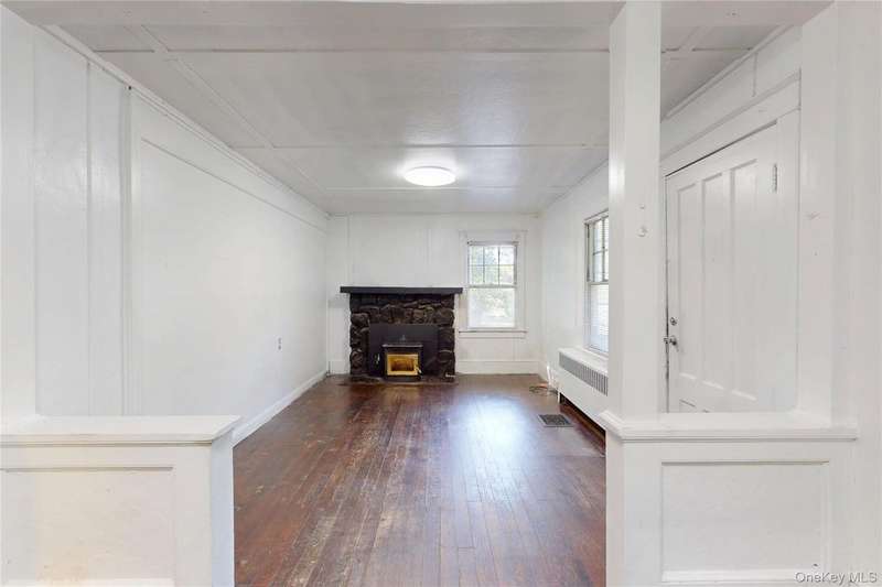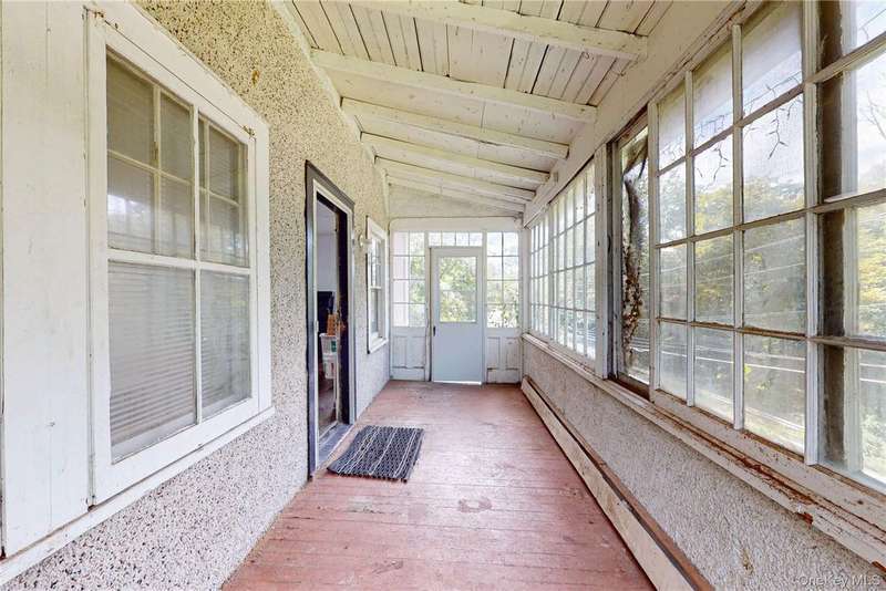 This conveniently located two-bedroom, one-bath stucco residence offers significant potential for improvement. Situated on a corner lot just minutes from the Metro North train station, major highways, shopping, and the charming hamlet of Croton Falls, it is ideal for commuters. Key features include hardwood flooring, a mantled stone fireplace, and an enclosed heated front porch adding additional living space. This property presents an excellent opportunity as a rental or year-round home for buyers seeking to add value through renovation.