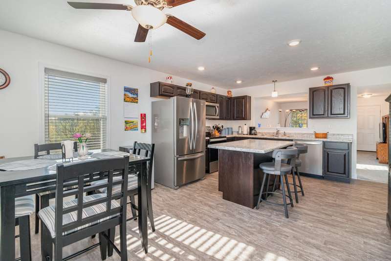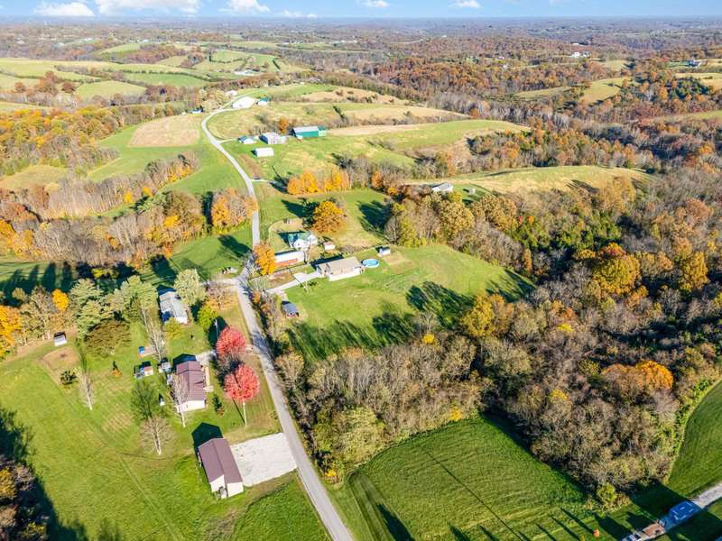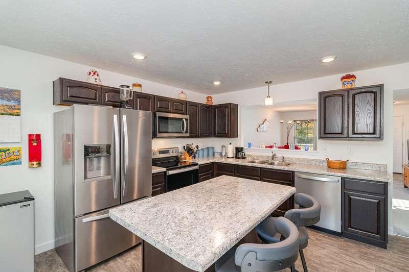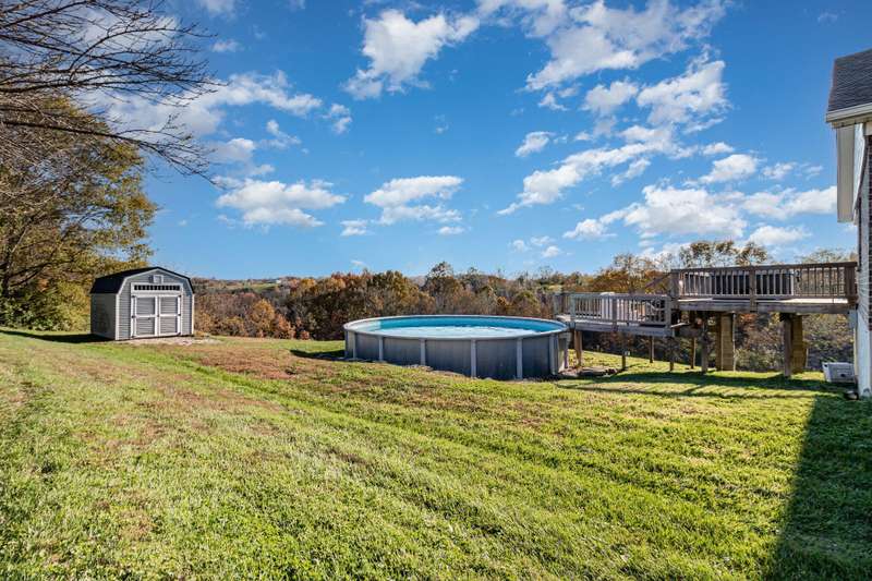 Enjoy your 5.42 acre slice of paradise with this custom built TK Homes brick ranch. This home boasts an open floorplan, made for entertainment! Espresso kitchen cabinets are accented by stainless steel appliances. Kitchen walks out to covered patio with deck space walking down to your own private pool! The backyard features a shed and tree lined lot. Primary bedroom features ensuite bathroom with walk in shower. Unfinished lower level is ready to add additional living space. Two car garage. Schedule your private showing today!
