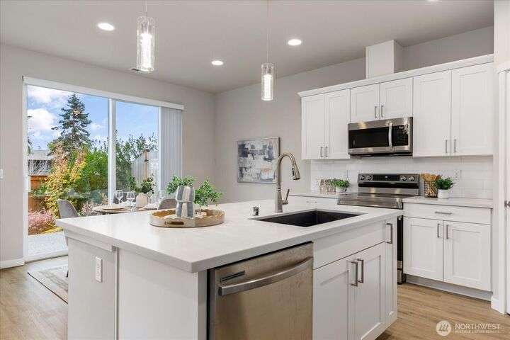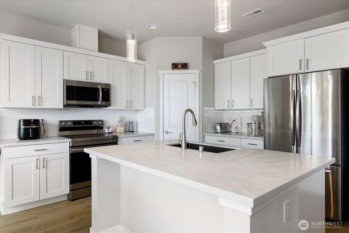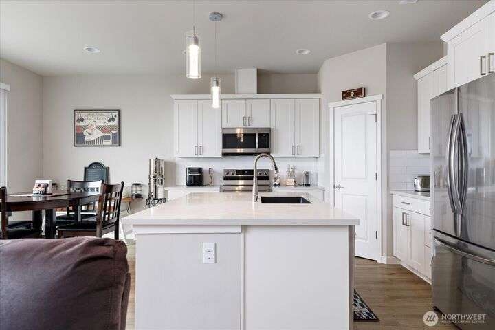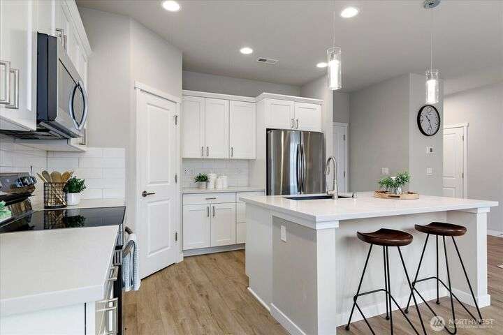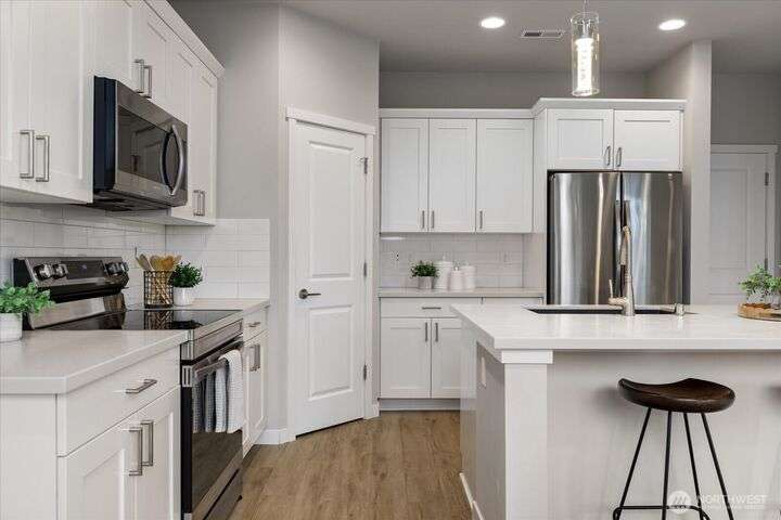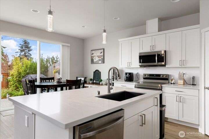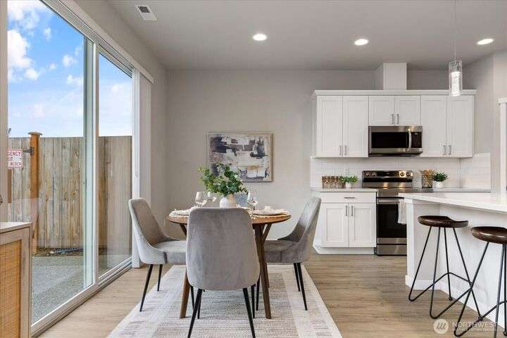 Set in a private yet centrally located pocket of town--with custom nearly-new construction & effortlessly stylish interior--this home has it all! With 1738 square feet, highlights: 3 bedrooms, 2.25 baths, & a spacious Great room with vaulted ceilings, durable LVP floors, & oversized picture windows. The thoughtfully designed kitchen has polished quartz counters, custom cabinetry, deluxe walk-in pantry & entertaining island/breakfast bar. The dining space is intimate & open w/fast access to your level patio & low maintenance yard. Wow! When you add in the efficient heat-pump (offering year-round comfort), 2-car garage, & nominal dues that cover landscaping, community park/play area & more? You've just unlocked an amazing place to call home!
