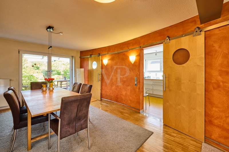 One- to two-family house in Brensbach With a living space of approx. 210 m² and a total plot size of approx. 2,180 m², this well-kept detached house offers a spacious living ambience in a quiet, natural location. A total of 3 plots belong to the property, which guarantees you an exceptionally spacious garden and offers a wide range of possible uses. The house was completed in 1972 and extensively renovated in 1997/98. The property impresses with its well thought-out floor plan and numerous features that emphasize the living comfort. A total of seven rooms are spread over two floors, including four spacious bedrooms and two well-kept bathrooms. The living area impresses with bright window fronts with floor-to-ceiling windows, high-quality parquet flooring and a wood-burning stove, which creates a cozy atmosphere, especially in the winter months. A designer sliding door divides the living and dining area and sets visual accents. The high-quality Bulthaup kitchen gives everyday cooking that special something. Adjacent to the living area, you have direct access to the spacious terrace with a view of the mature, planted garden. Here you can enjoy privacy and enough space for individual design ideas - whether it's a play area, garden beds or a place to retreat into the greenery. Numerous built-in cupboards in carpentry quality offer additional storage space and make the house particularly functional. The central pellet heating system from 2001, together with a solar thermal system, ensures efficient and sustainable heat generation. The basement not only offers a spacious usable area that can be used in a variety of ways - for example as a workshop, storage room or hobby area - but also underlines the practical character of this house. The attic is currently not yet fully developed and represents attractive expansion space for future projects. There are several parking spaces for cars on the property. The attractive overall size of the property allows you to realize a wide range of garden and leisure ideas. Overall, this detached house presents itself as an ideal option for families or couples who appreciate spacious and functional living with a wide range of rooms. The combination of a well thought-out floor plan, well-kept condition and modern technology - such as pellet heating and solar thermal energy - make this property particularly interesting.