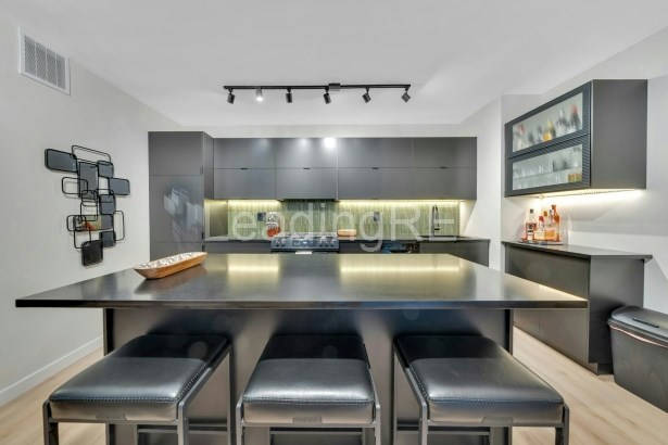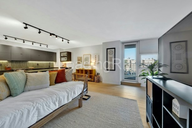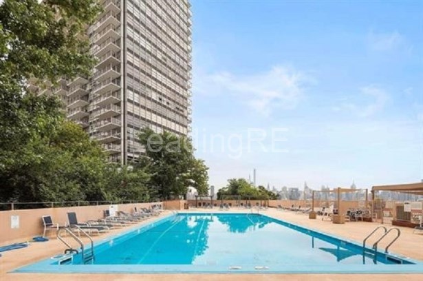 This completely gutted and fully renovated west-facing studio at the Riviera Towers in West New York offers modern luxury, a private terrace, and a prime Boulevard East location. The open-concept layout showcases a redesigned kitchen with all-new soft-close cabinetry, custom panel-ready refrigerator, stainless steel appliances, under-cabinet lighting, a spacious island with electric and storage, bar area, cold water filter, and sleek track lighting. The spa-style bathroom was rebuilt from the studs with a walk-in shower, low-profile toilet, vanity, pocket door, medicine cabinet, built-in storage, and all-new fixtures. Electrical and plumbing have been fully updated, including a new sub panel, rewired outlets with kitchen dimmers, and new shut-off valves. Throughout the home, commercial-grade waterproof luxury vinyl flooring, new baseboards, modern light fixtures, built-in closets, a new PTAC heating and cooling unit, and updated window treatments including the terrace door create a fresh, move-in-ready space. Riviera Towers residents enjoy exceptional amenities including a pool area with sweeping New York City and Hudson River views, barbecue area, 24-hour concierge, optional on-site gym membership, parking, and a convenience store. Perfectly situated near buses to New York City, with close access to the Light Rail, New York Waterway ferry, local parks, cafés, markets, and restaurants, this home blends style, comfort, and convenience in one of the most desirable locations along the Gold Coast.