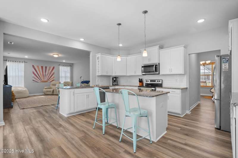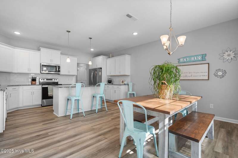 Beautiful 4 Bedroom, 2.5 Bath Two-Story Home FURNISHD (with few exceptions) on Large Private Lot. Nestled on a spacious .35 acre lot backing up to a serene wooded area, this stunning Green Building Certified home offers both privacy and convenience. Step inside through a welcoming foyer entrance into a spacious, open floor plan that's perfect for both entertaining and everyday living. The gourmet kitchen is a chef's dream, featuring Granite Countertops, 42-inch Cabinets with Crown Molding, Stylish Tile Backsplash, Large Walk-in Pantry, and Center Island with Bar Seating. The Kitchen seamlessly flows into the Family Room boasting 9-foot ceilings, enhancing the airy, modern feel throughout the main level. Upstairs retreat to the expansive master suite with a large walk-in shower and luxurious bath complete with dual vanities, Walk-in Tiled Shower, Ceramic flooring and Transom Window for natural light. Walk-in closets in 3 of the 4 Bedrooms. Additional features include a two-car garage and a generous yard perfect for relaxing, gardening or entertaining- backed up by mature trees for added seclusion. Don't miss the opportunity to own a beautiful home in a prime location with the charm of nature right in your backyard. Located just off Highway 17, enjoy an easy commute to Southport, Oak Island, and North Myrtle Beach, and you're only about 5 minutes from the sandy shores of Holden Beach.