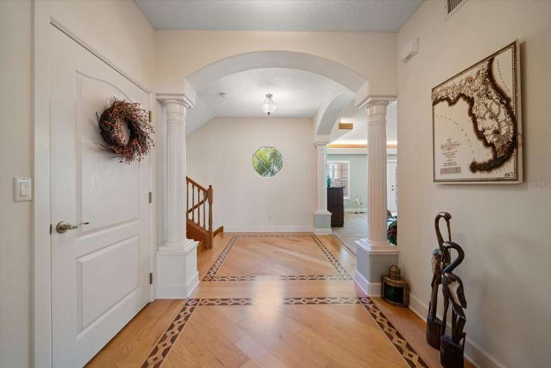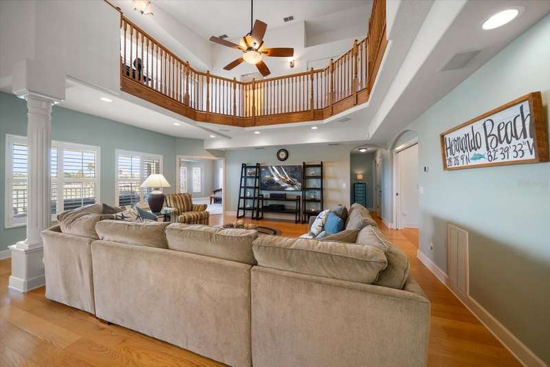 PRESENTS FOR EVERYONE! Seller is offering FOR A LIMITED TIME - HOLIDAY BUYER INCENTIVE OF $25,000 with a closing on or before 12/31/25. Use the concession to further buy down interest rates, pay closing costs or just lower the price even more on this amazing WATERFRONT PROPERTY! A HOME FOR THE HOLIDAYS - this amazing home featured in Haven Magazine WILL DAZZLE WHEN ALL DECKED OUT FOR HOLIDAY GATHERINGS OR PROVIDE A WELL-DESERVED RETREAT TO ESCAPE THE WINTER COLD! Pride of ownership with the Seller recently putting in over $200,000 in upgrades. The newly renovated lower level unlocks incredible possibilities with 1700 square feet of expansive flex space that is not included in the square footage including extra rooms and pool changing room and facilities and rooms to accommodate a gym, office or game room. A pre-existing elevator shaft allows for future lift installation with ease to access all three floors. This is waterfront living at its finest on the Nature Coast! Perched on a premier point lot with panoramic Gulf views from the Hernando Beach Flats, this stunning CUSTOM BUILT 3-bedroom, 2.5-bath coastal estate with a 3-car garage blends timeless luxury with relaxed waterfront living in pristine Hernando Beach - Home of the Mermaids! A private dock with a 10,000-pound boat lift and separate paddle craft dock offers instant access to all the fishing, boating and water-sports of the Nature Coast! The resort-style salt water and solar/gas heated pool is a showstopper, complete with a soaring custom aluminum cage, grotto waterfall, and lush tropical landscaping that melts seamlessly into the natural surroundings. A spacious screened pool patio is ideal for entertaining on any scale, with room for dining or watching the game together with direct access to the docks and pool. Just minutes by boat to the private community boat lift & you are OUT IN THE OPEN GULF WATERS! The home’s captivating curb appeal features columned grand steps, stately palms, and a welcoming veranda—perfect for greeting guests or inviting neighbors up for a cocktail in the connected parlor and living room. The rest of the main level welcomes you inside with soaring ceilings in a sun-drenched great room, and an open-concept kitchen featuring custom cabinetry, stainless steel appliances, tile backsplash, engineered hardwood flooring, and a generous island with breakfast bar, an over-sized butler’s pantry, dual convection ovens with microwave and a well-appointed utility room that has a sink with a view & ample storage – all add thoughtful convenience. The main-level primary suite is a retreat unto itself, offering double-door entry, bay window views, direct veranda access, and a spa-inspired bath with walk-in tile shower, alcove soaking tub, dual vanities, and a private water closet. Outdoor living is at its finest with four distinct verandas, each with its own charm—from morning coffee spots to shady retreats, sunset lounges, and a sun-drenched perch for stargazing or afternoon reading and napping. The upstairs loft offers an additional lounge and bonus area leading to two guest bedrooms and a full bath—perfect for visitors or family fun. The enormous garage has boat storage and room for cars and toys and projects with a nice workshop area and doorway to the back grill area. Built with modern coastal resilience in mind and packed with upgraded features, this extraordinary residence is the epitome of Florida waterfront living—an opportunity to be captured!